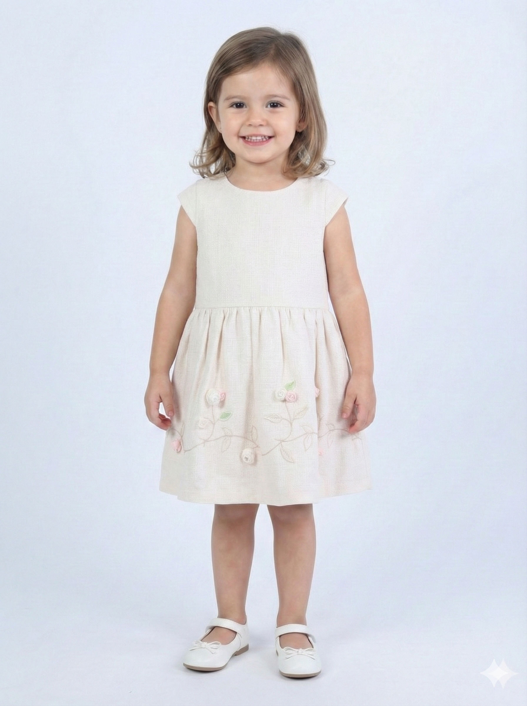 Kız Çocuk Elbise 4-8 Yaş 1605 Ekru
