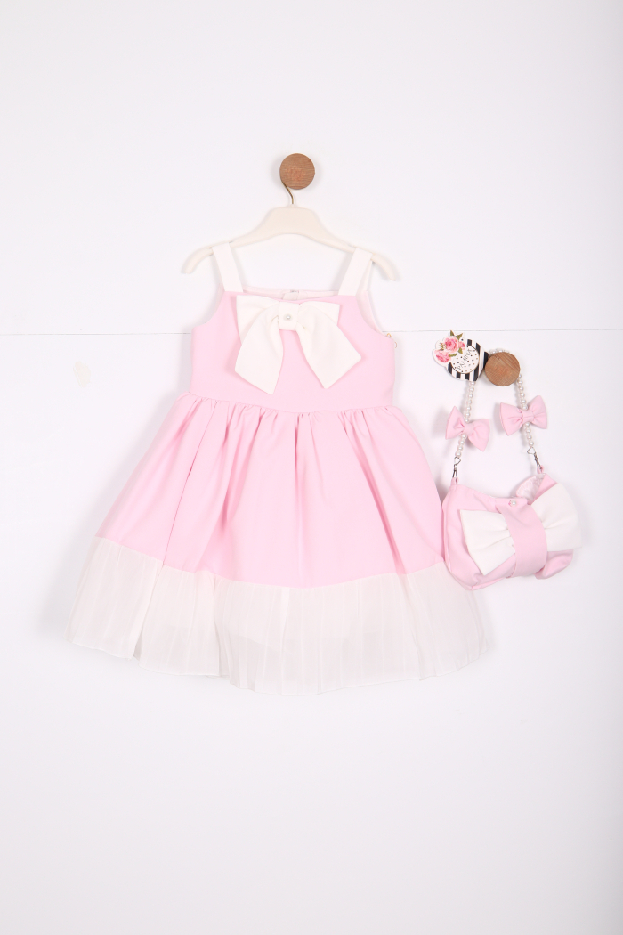 Bu şirin kıyafet, yaz aylarının neşesini yansıtan mint yeşili tonu ile kız çocuklar için mükemmel bir seçimdir. Sade ama şık tasarımı, hem günlük hem de özel günlerde giyilebilir. Üzerindeki büyük beyaz kurdele, elbisenin zarif görünümüne katkıda bulunur.