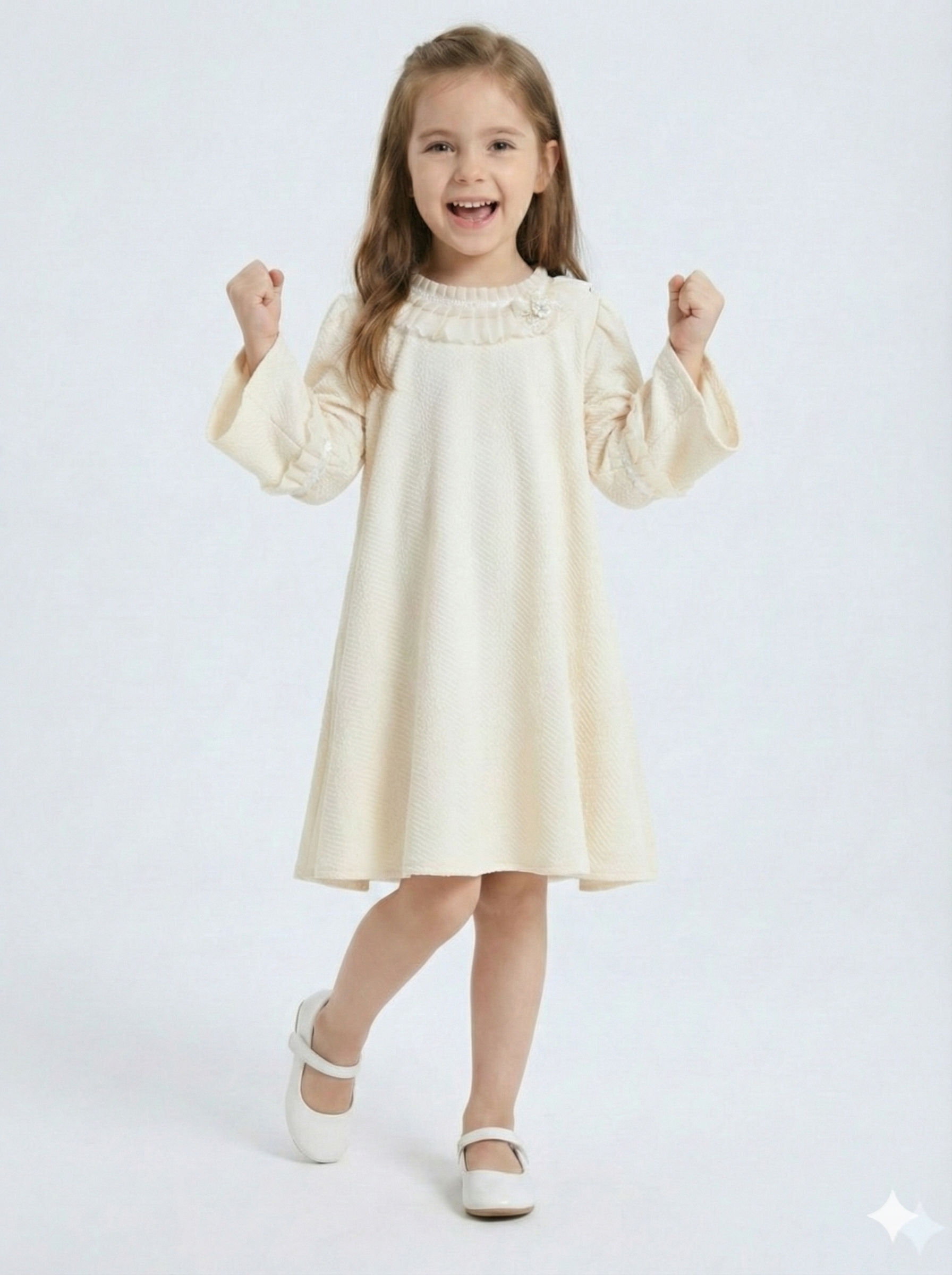 Kız Çocuk Elbise 4-8 Yaş 1605 Ekru