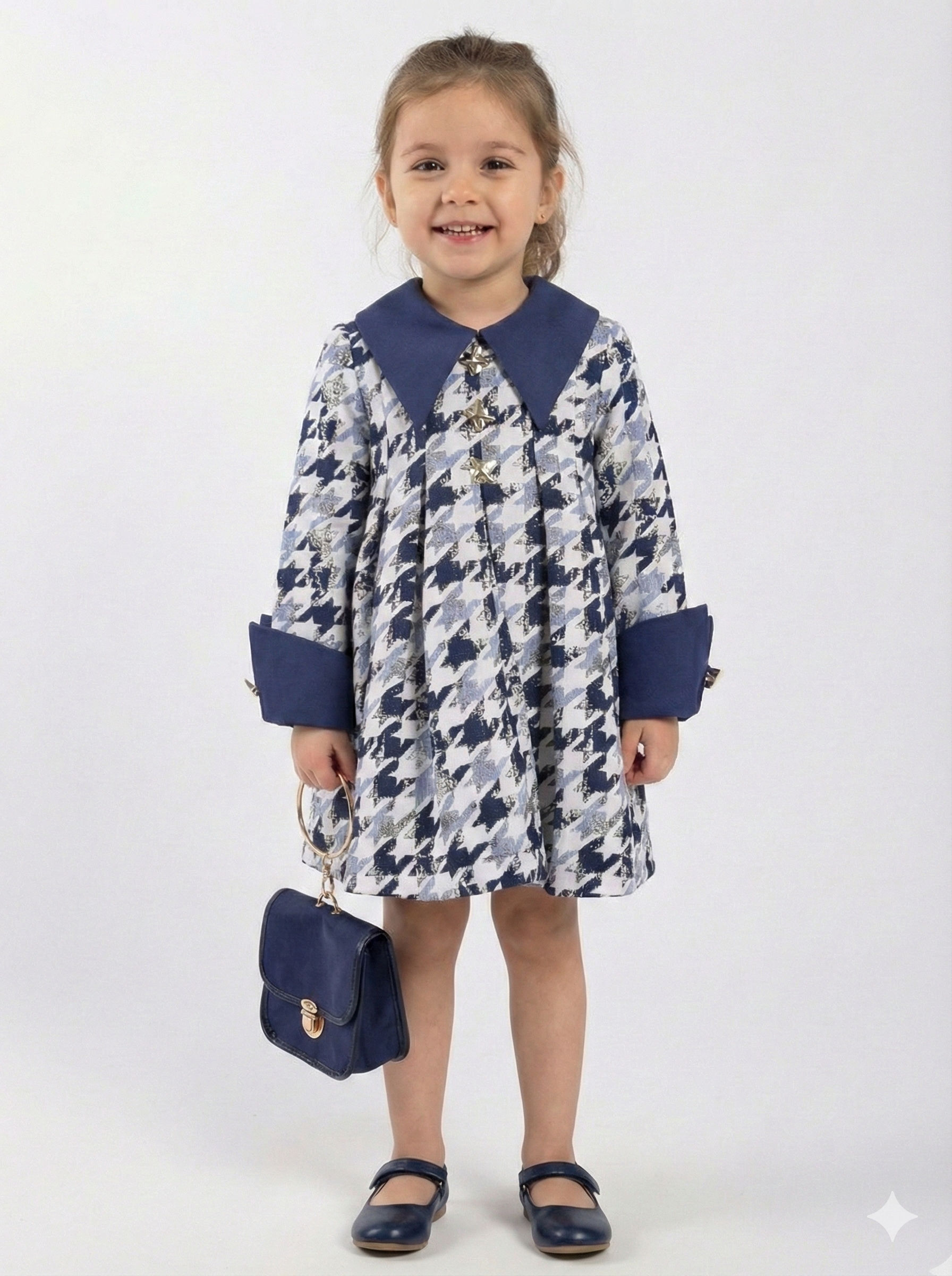 Kız Çocuk Elbise 4-10 Yaş 9216 Lacivert