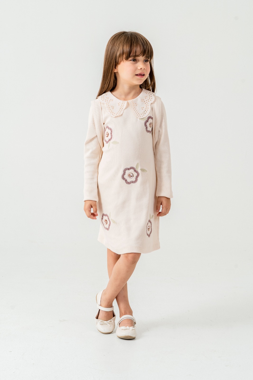 Kız Çocuk Elbise 4-7 Yaş 52032 Bej - 1