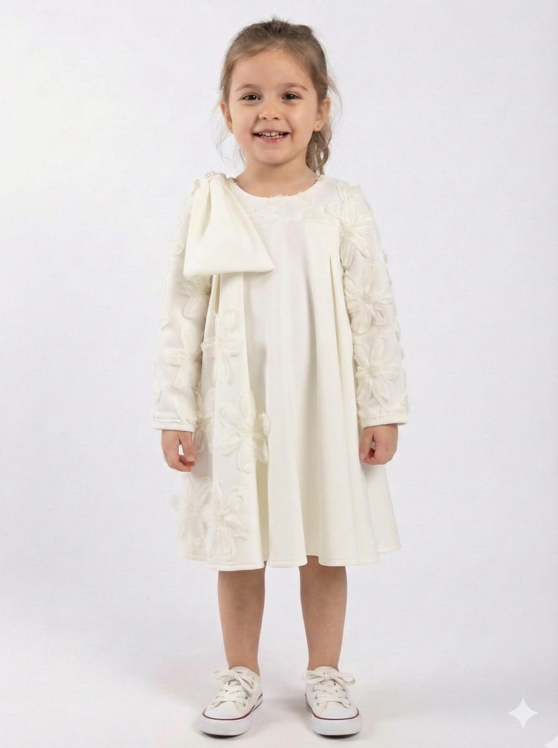 Kız Çocuk Elbise 4-8 Yaş 1605 Ekru