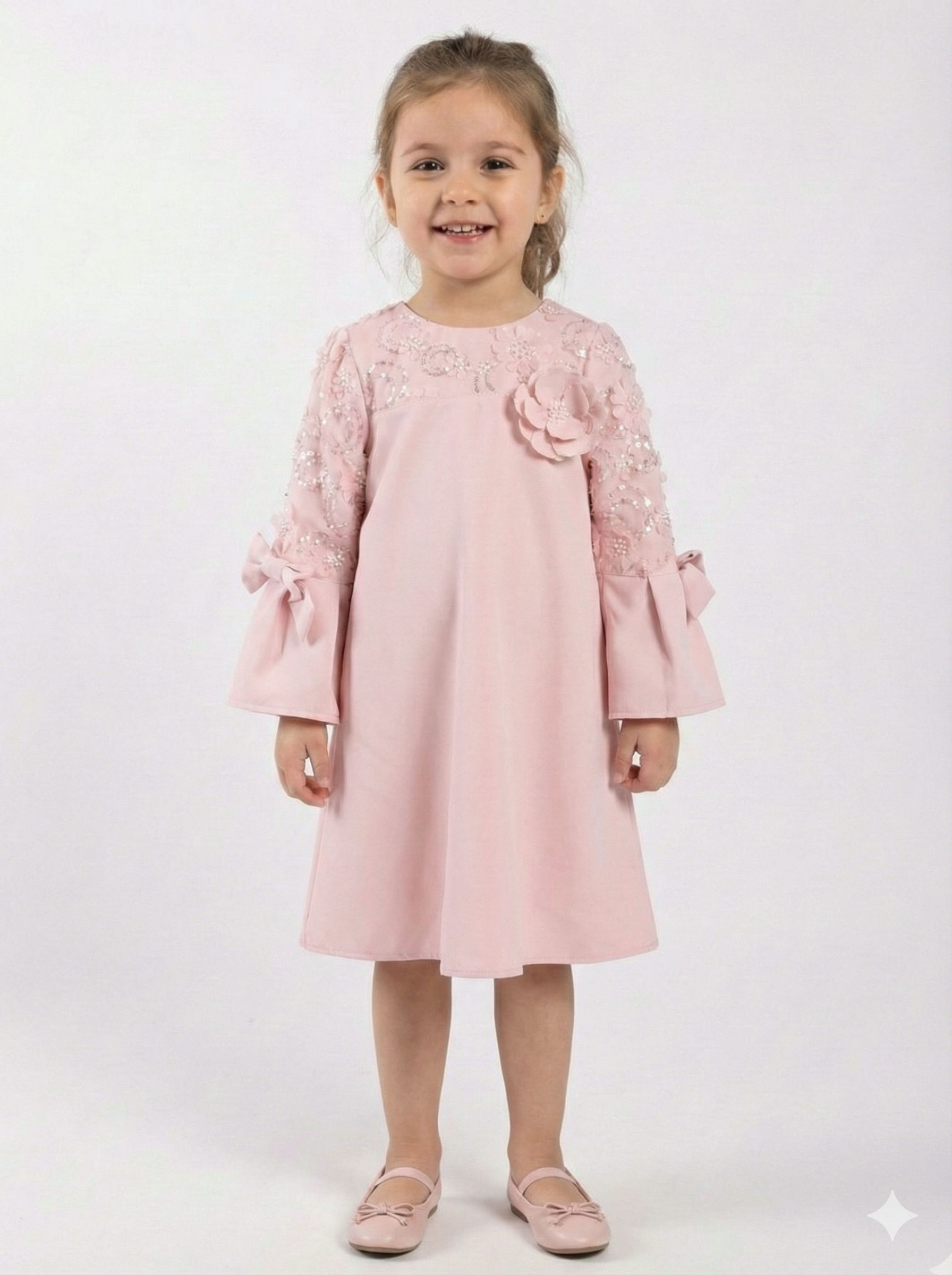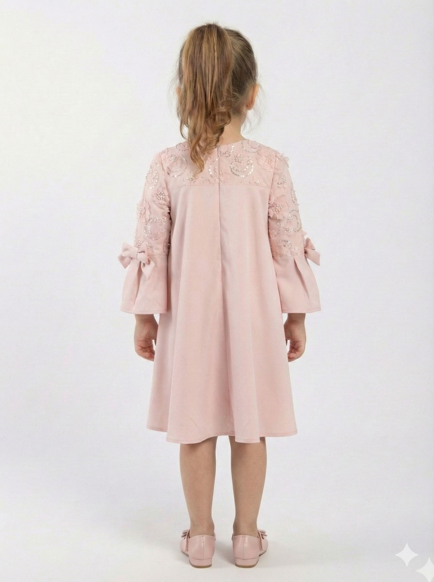 Kız Çocuk Elbise + Bolero 4-7 Yaş 52120 Pudra