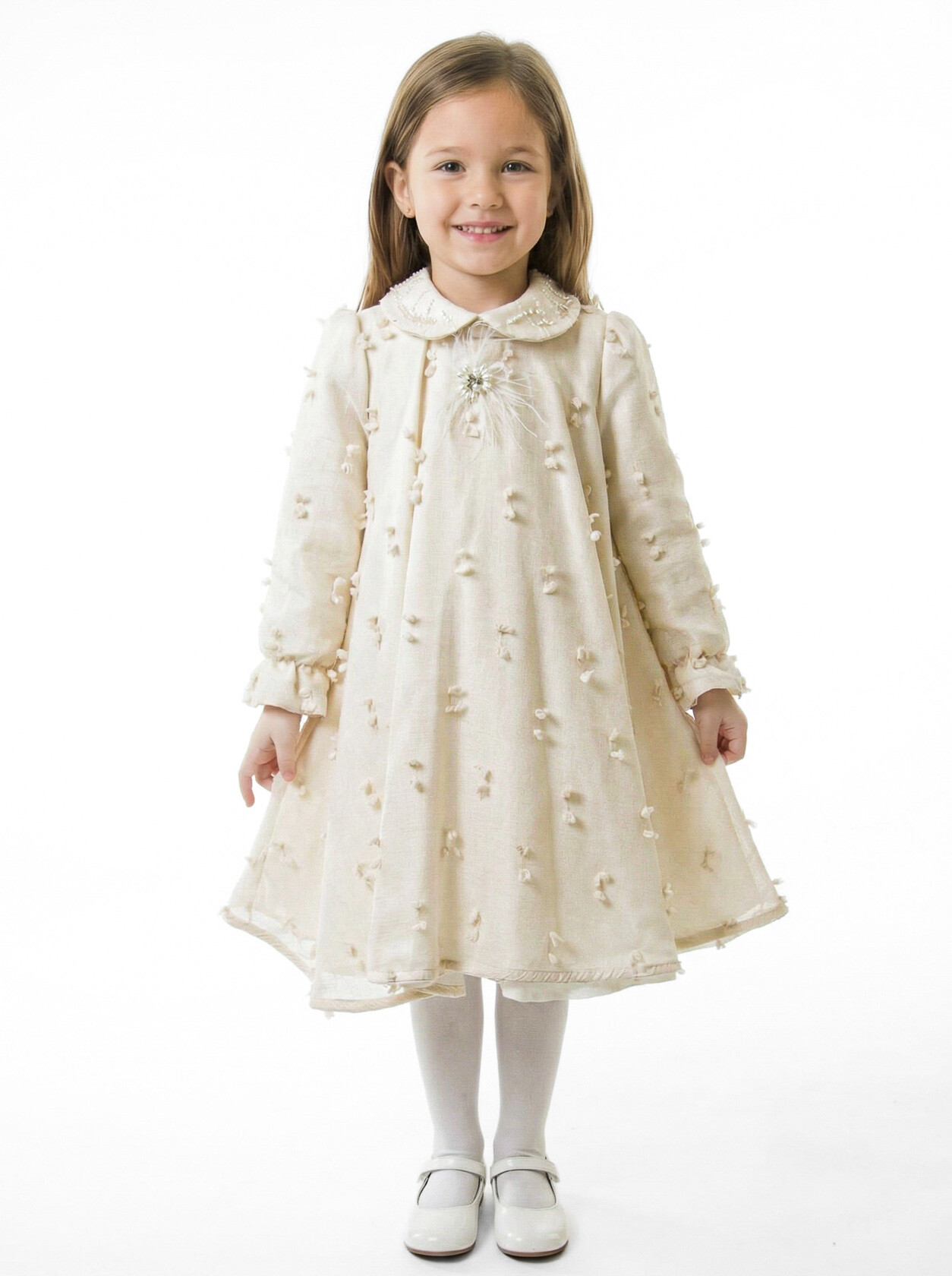 Kız Çocuk Elbise 7-11 Yaş 2711 Ekru