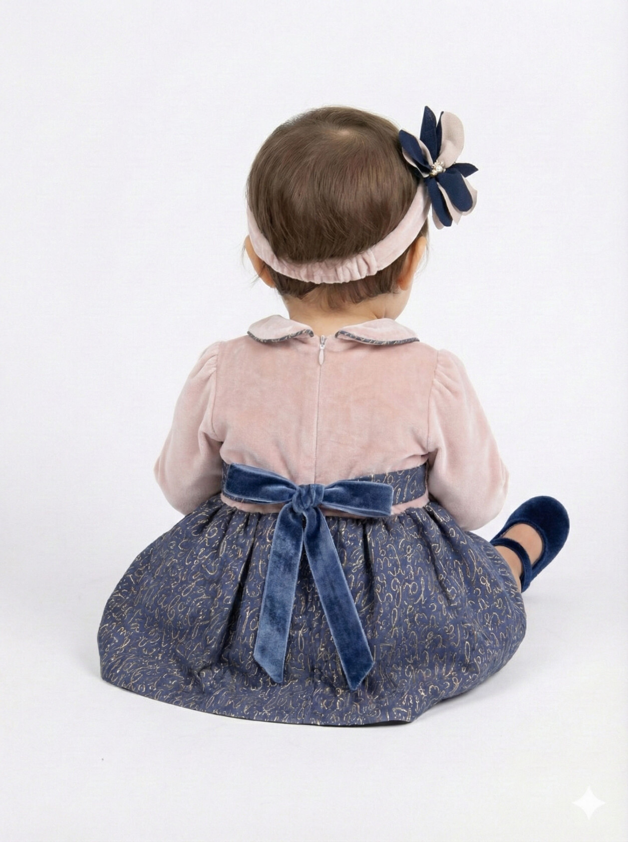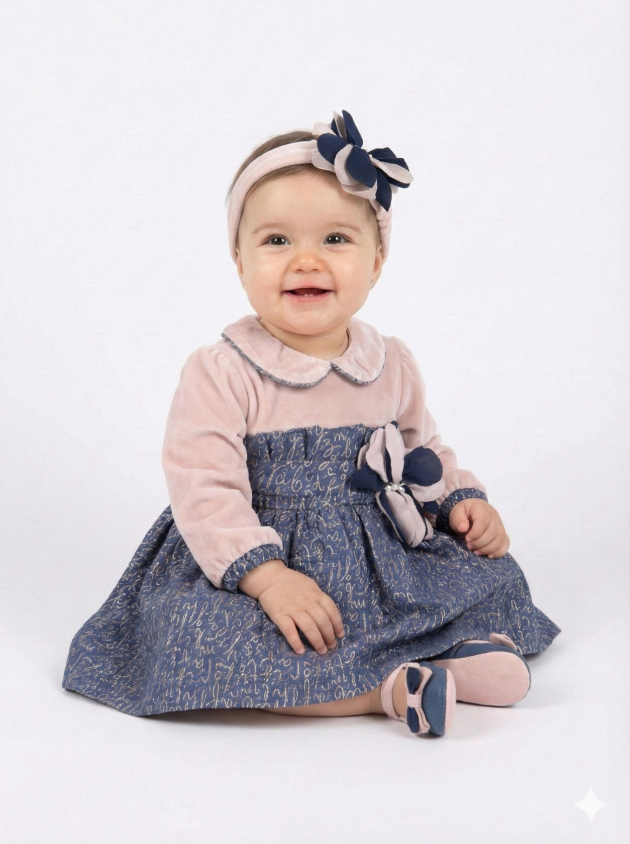 Kız Çocuk Elbise 6-36 Ay 9071 Bej - Lacivert - 1