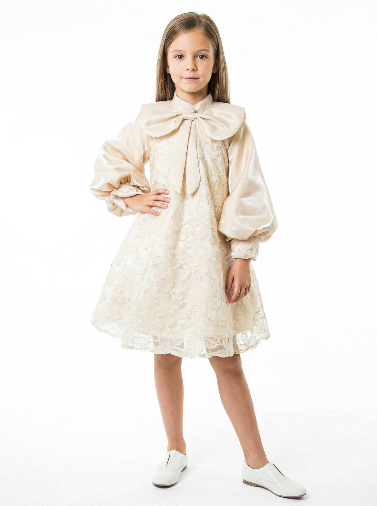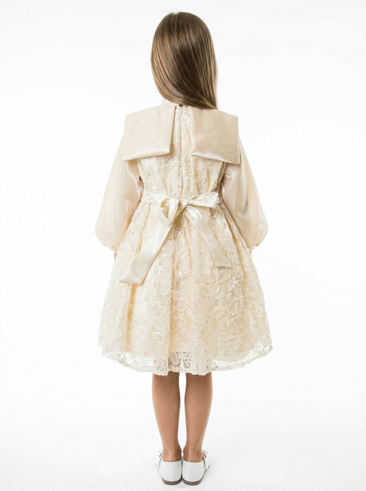 Bu zarif kız çocuk elbisesi, özel günler için mükemmel bir seçimdir. Yumuşak ve hafif kumaşıyla, bahar aylarında rahat bir kullanım sunar.