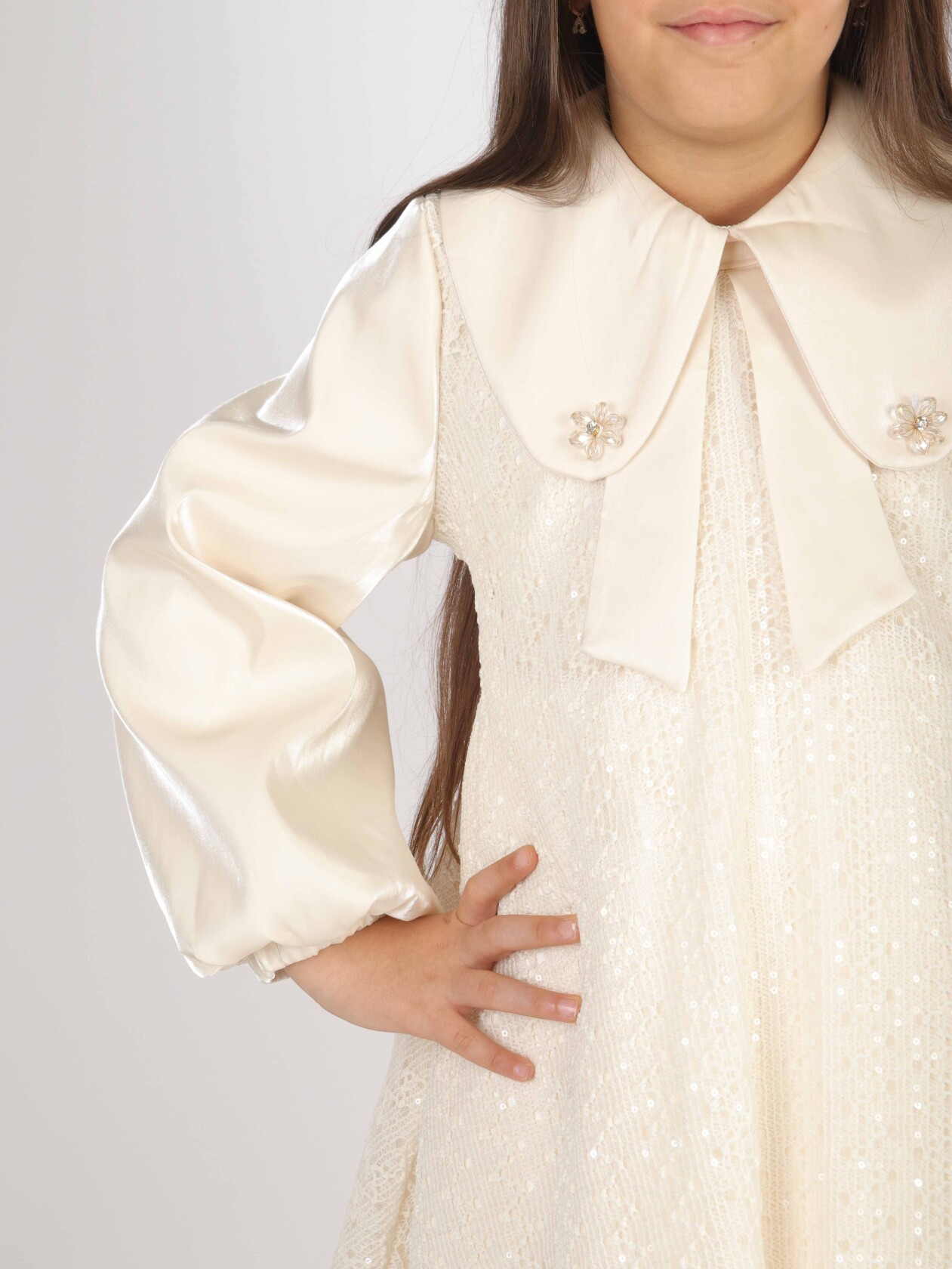 Kız Çocuk Elbise 7-11 Yaş 26571 Bej - 2