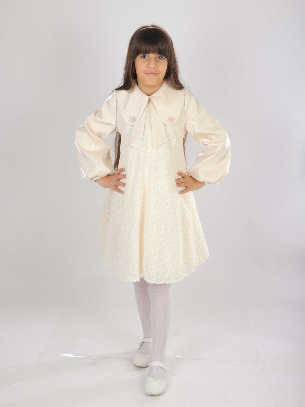 Kız Çocuk Elbise 6-10 Yaş 1619 Beyaz