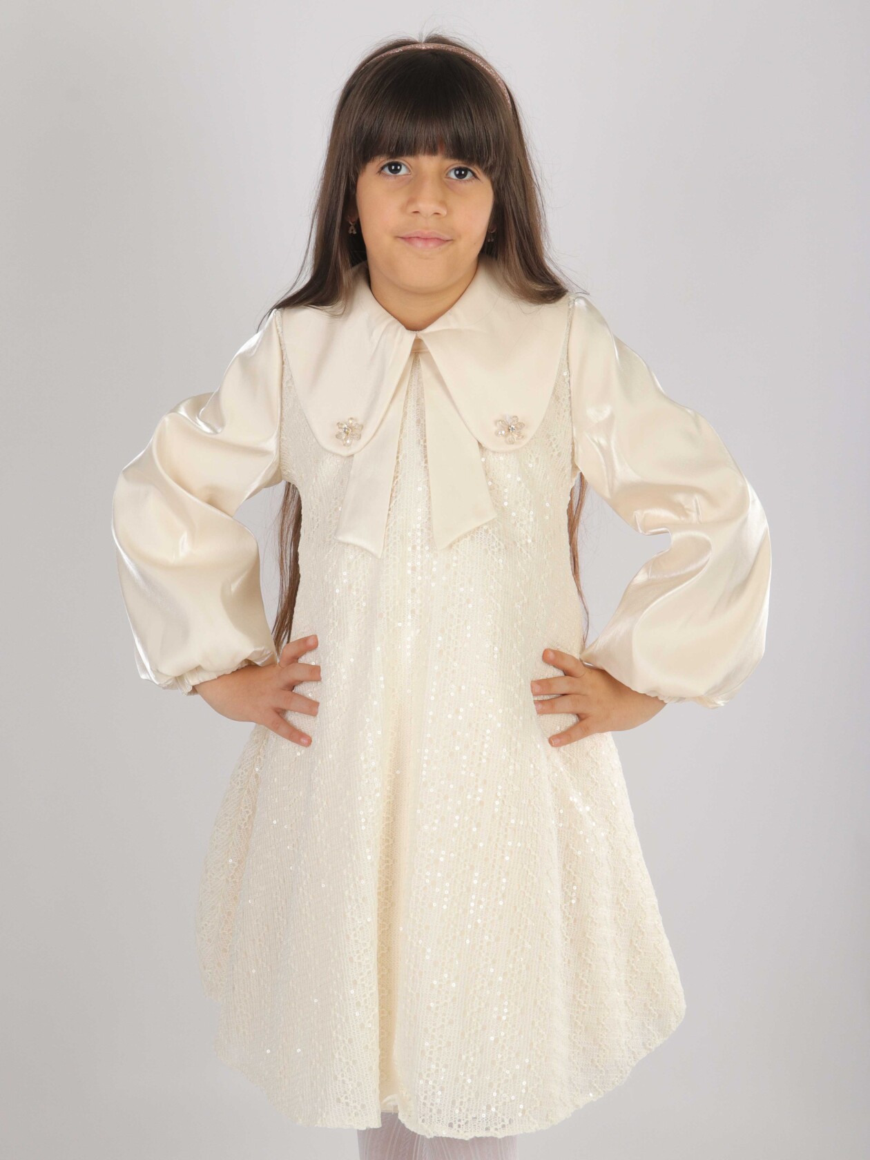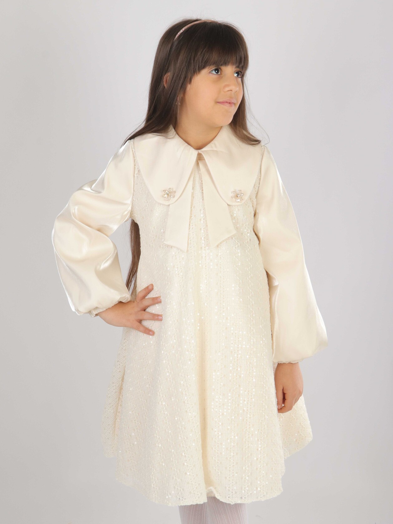 Kız Çocuk Elbise 7-11 Yaş 26569 Bej