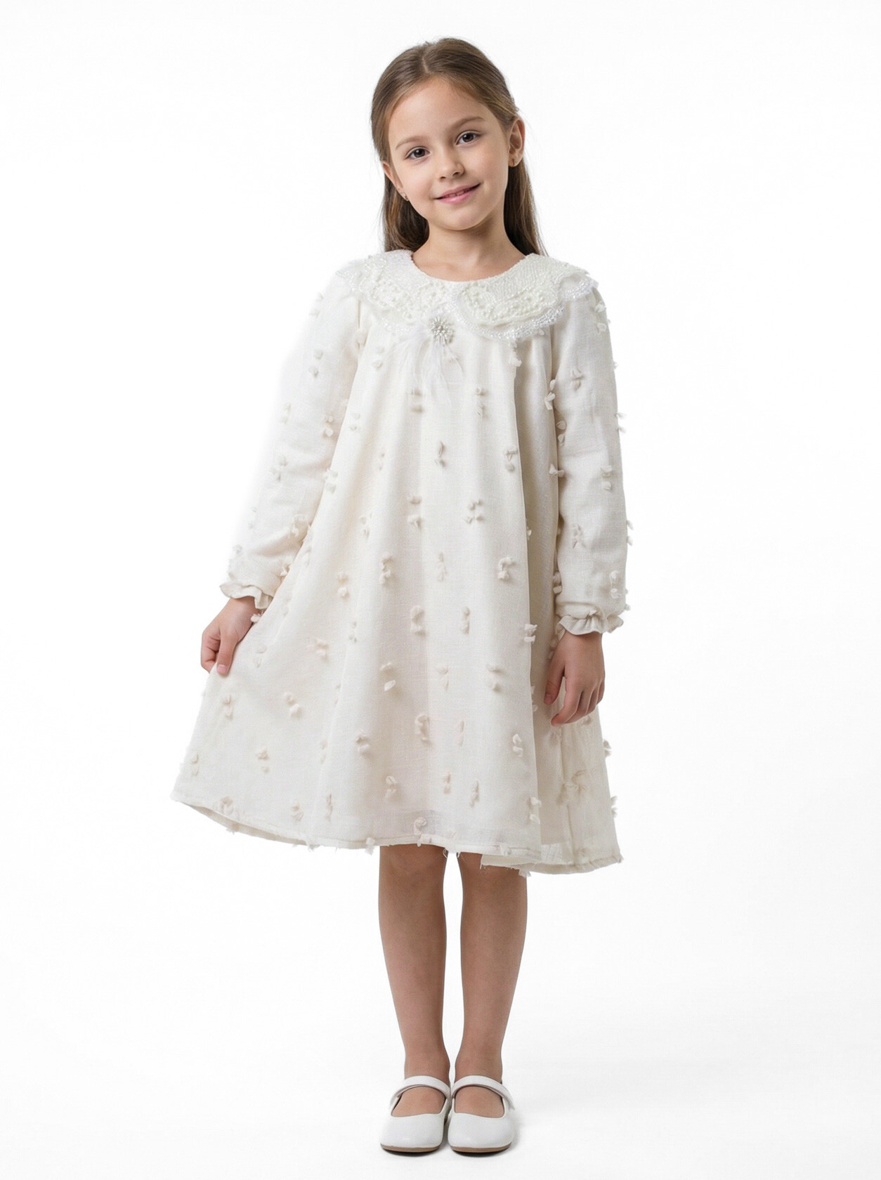 Kız Çocuk Elbise 8-12 Yaş 1690 Ekru