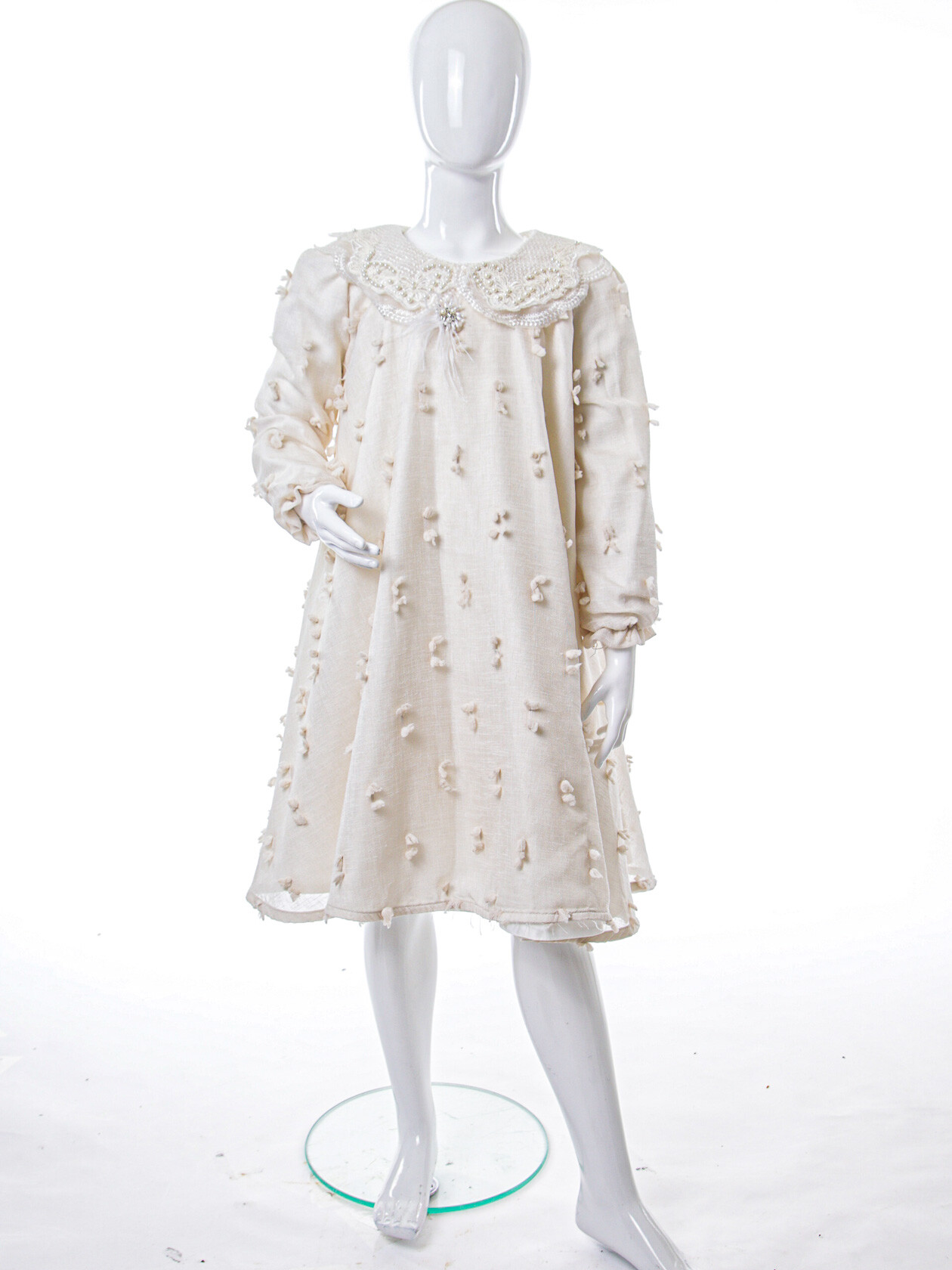 Bu şık kız çocuk elbisesi, özel günler için mükemmel bir seçimdir. Ekru rengindeki elbise, zarif detaylarıyla dikkat çekmektedir.