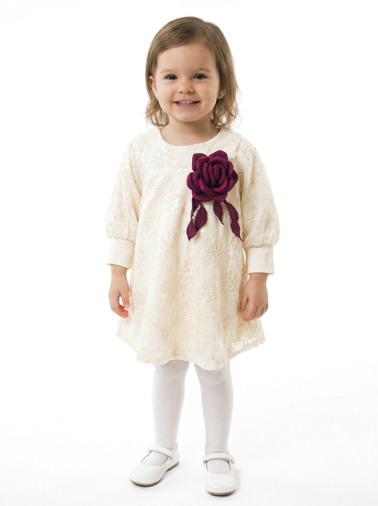 Kız Çocuk Elbise 9-24 Ay 513 Ekru