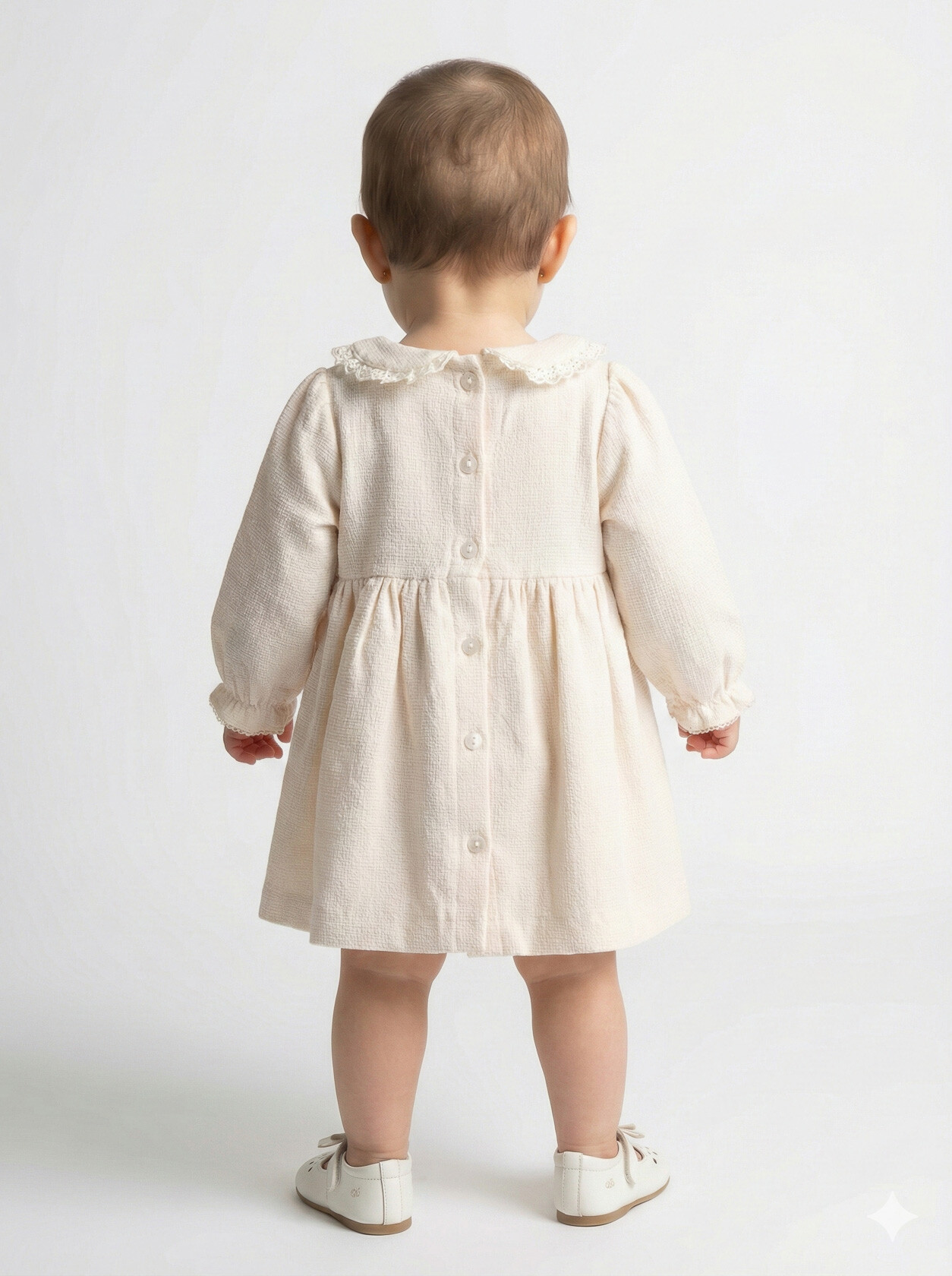 - Yaka: Düğmeli, dantel detaylı