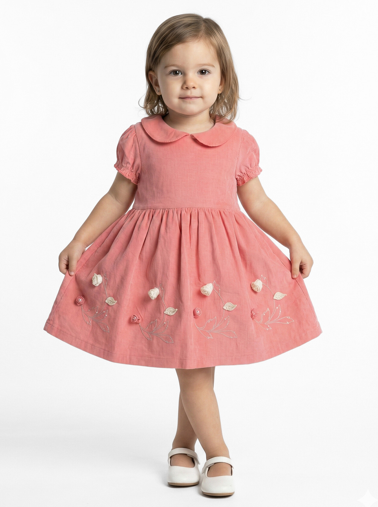 Bu şık ve rahat kız çocuk elbisesi, bahar sezonu için mükemmel bir seçimdir. Narenciye rengi ile dikkat çeken elbise, zarif detaylarıyla göz dolduruyor.
