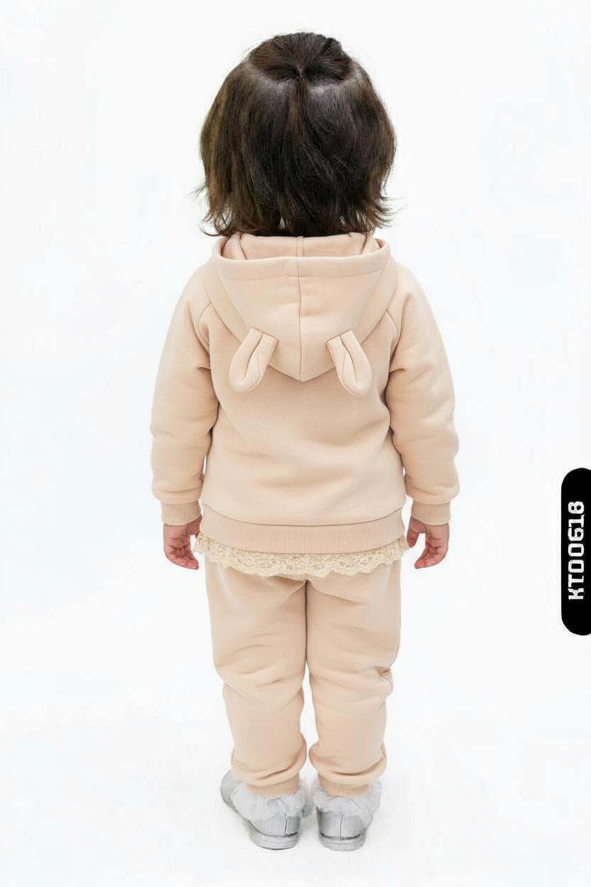 Yumuşak dokusu ve sıcak tutan yapısıyla Kız Çocuk Ekru Eşofman Takımı, kış ayları için ideal bir seçimdir. Kapüşonlu üst kısmı, arkada sevimli kulak detaylarıyla şıklık katarken, ön kısmında yer alan sevimli ayıcık ve kuş baskısı çocukların ilgisini çeker. Fermuarsız, rahat kesimi ve manşetli uzun kolları sayesinde hareket özgürlüğü sağlar. Alt eşofman ise cep detaylı ve paçaları lastiklidir, böylece oyun oynarken rahatlık sunar. Üstteki dantel detay, takıma zarif bir dokunuş ekler. Modern ve şık tasarımıyla günlük kullanım için uygundur.