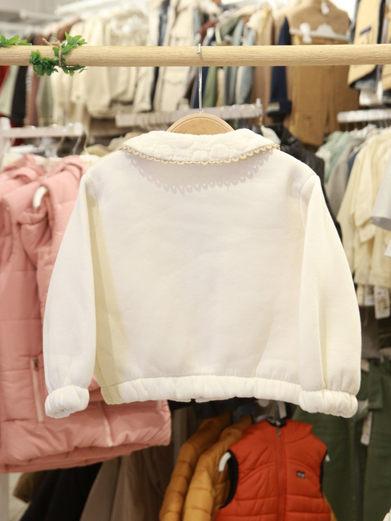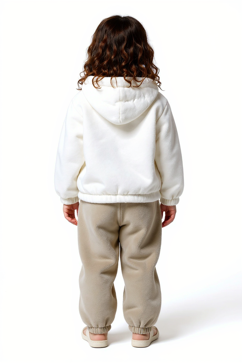Bu kız çocuk eşofman takımı, kış ayları için sıcak ve rahat bir seçenek sunar. Üst parça, kapüşonsuz, fermuarlı ve uzun kolludur. Ön yüzü kabartmalı çiçek desenleriyle süslenmiş ve sevimli bir cep detayı bulunur. Ayrıca yaka kısmı yuvarlak ve hafif kabarık, şık bir görünüm sağlar. Alt parça ise bol kesim, elastik bilek ve bel kısmında bağcık detayına sahiptir. Takımın genel stili hem günlük kullanım hem de oyun zamanı için idealdir.
