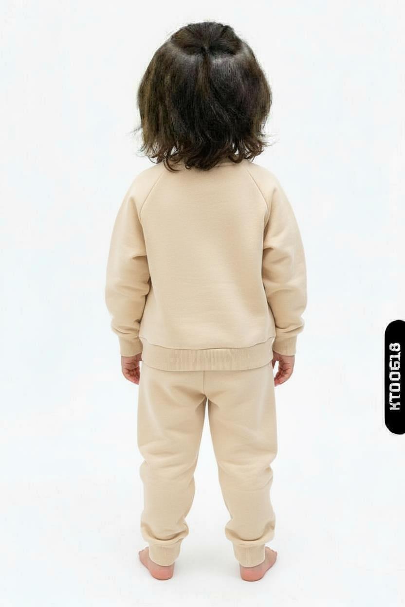 Bu kız çocuk eşofman takımı, rahatlığı ve şıklığı bir arada sunar. Bej renk tonundaki takım, uzun kollu ve sıfır yakalı üst ile tamamlanmıştır. Üst kısmında ve pantolonun yanlarında yer alan işlemeli dantel şeritler, ürüne zarif bir dokunuş katar. Takımda kapüşon yoktur ve fermuar ya da düğme bulunmamaktadır. Alt ve üst parçalarda ribana manşetler, konfor ve esneklik sağlar. Günlük kullanım için ideal, sade ve şık bir kışlık eşofman takımıdır.