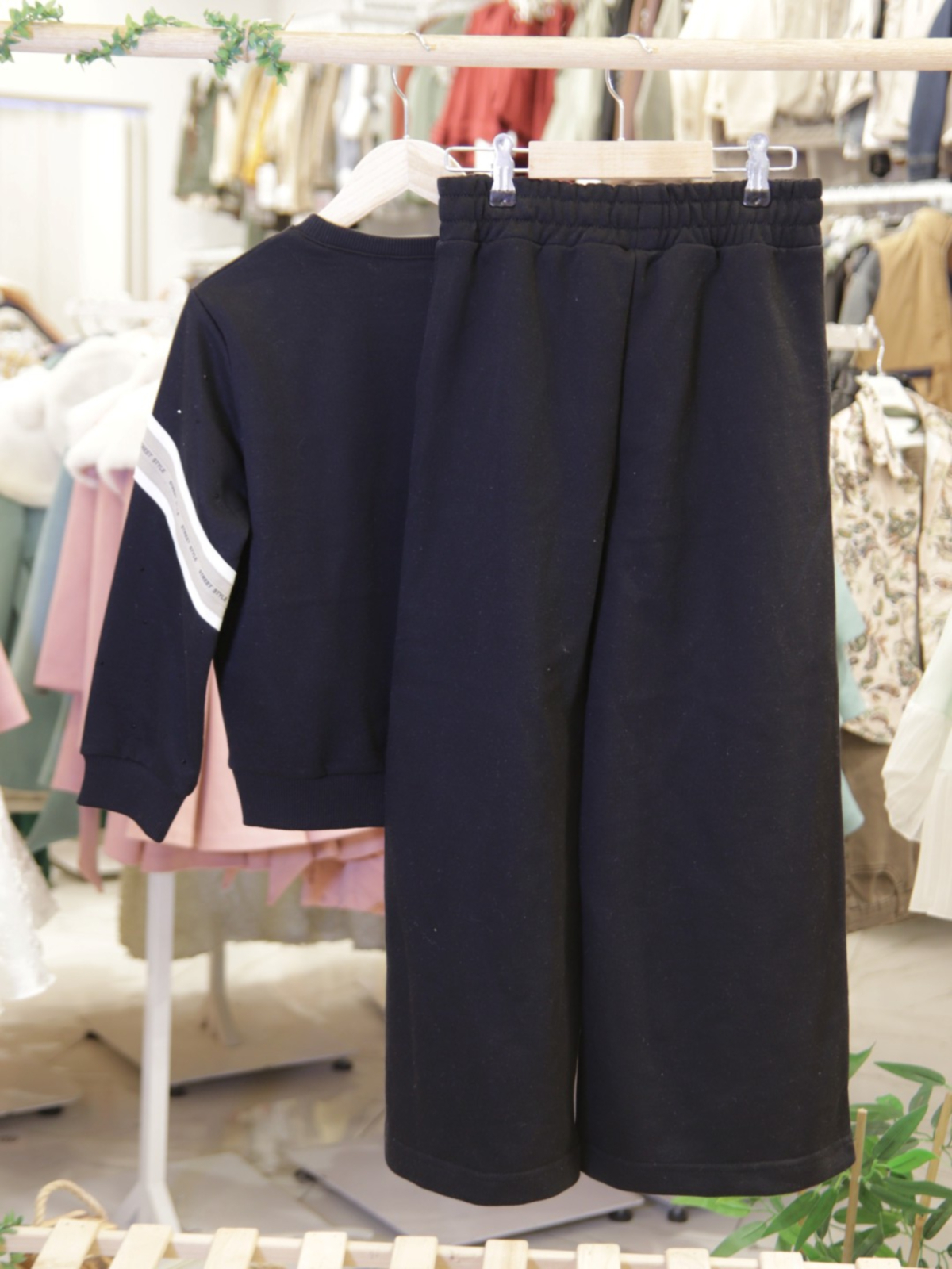 Bu şık kız çocuk eşofman takımı, rahatlığı ve modern tasarımı bir araya getiriyor. Kapüşonsuz ve fermuarsız üst, bisiklet yaka ile sade ve kullanışlı bir görünüm sunar. Uzun kollu ve cepsiz olan üst, kol ve pantolon boyunca uzanan bej renkli şerit detaylarıyla dikkat çeker. Alt ise bol paça ve midi boyda olup, şık ve rahat bir kullanım sağlar. Siyah rengin üzerinde bulunan şeritler, takıma sportif ve dinamik bir hava katmaktadır. KIŞ 2025-2026 sezonu için idealdir.
