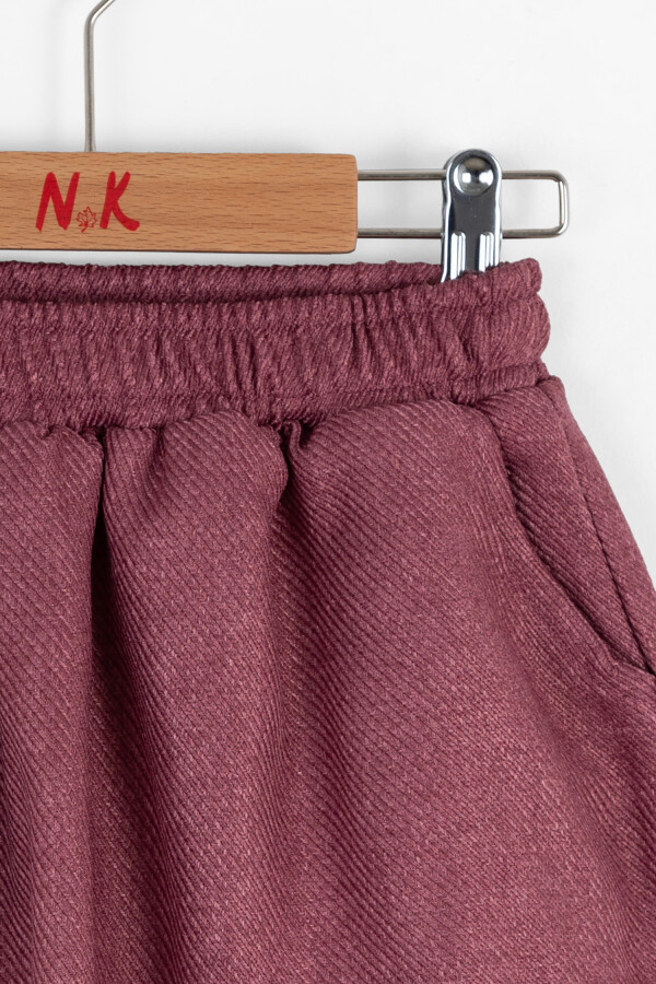 Bu kız çocuk eteği, yumuşak ve kalın dokusuyla kış ayları için ideal bir seçimdir. Pudra tonundaki renk, sıcak ve rahat bir görünüm sunar. Etek, kısa ve hafif kabarık yapısıyla çocukların hareket özgürlüğünü kısıtlamadan şıklık sağlar. Elastik bel bandı sayesinde kolayca giyilip çıkarılabilir. Yanlarda bulunan cepler, pratik kullanım için tasarlanmıştır.
