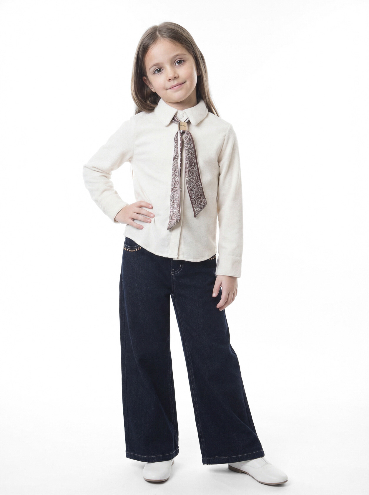Bu şık kız çocuk alt üst takımı, hem rahatlık hem de stil arayanlar için mükemmel bir seçimdir. Takım, yumuşak dokulu bir üst ve geniş paçalı pantolondan oluşmaktadır.