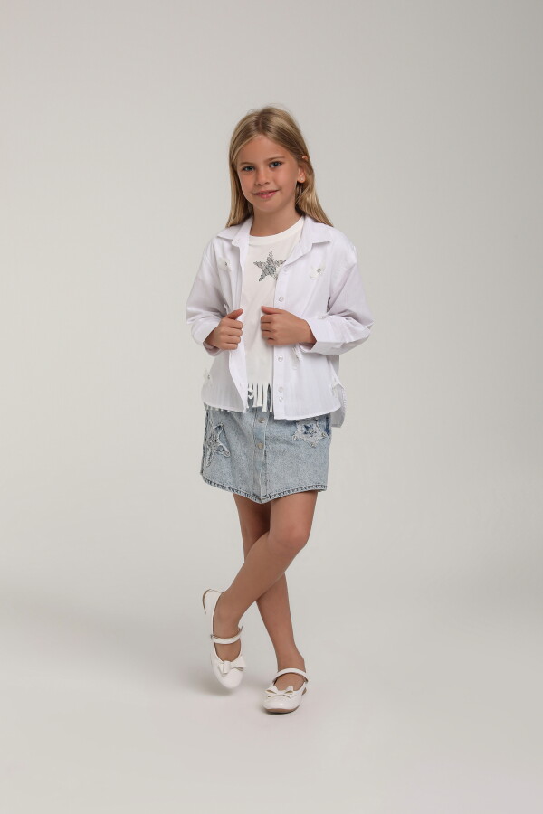 Bu şık ve rahat kız çocuk gömleği, günlük giyimde mükemmel bir seçenektir. Beyaz rengiyle her kombinle uyum sağlar. Düğmeli ön kısmı ve uzun kolları ile hem şık hem de kullanışlı bir tasarıma sahiptir.