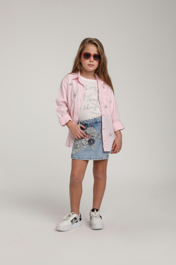 Bu şık ve rahat kız çocuk gömleği, pembe rengiyle yaz günlerinin vazgeçilmezi olacak. Üzerindeki zarif taş detayları, her yaştan kız çocuğunun beğenisini kazanacak. Gömlek, düğmeli kapama ve uzun kollu tasarımıyla hem şık hem de rahat bir görünüm sunuyor.