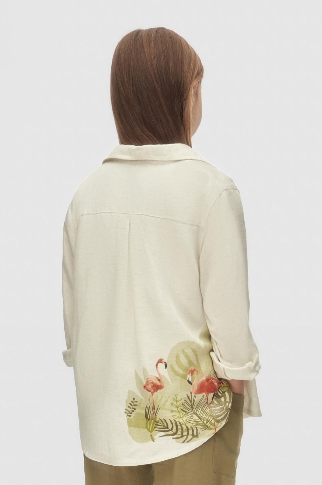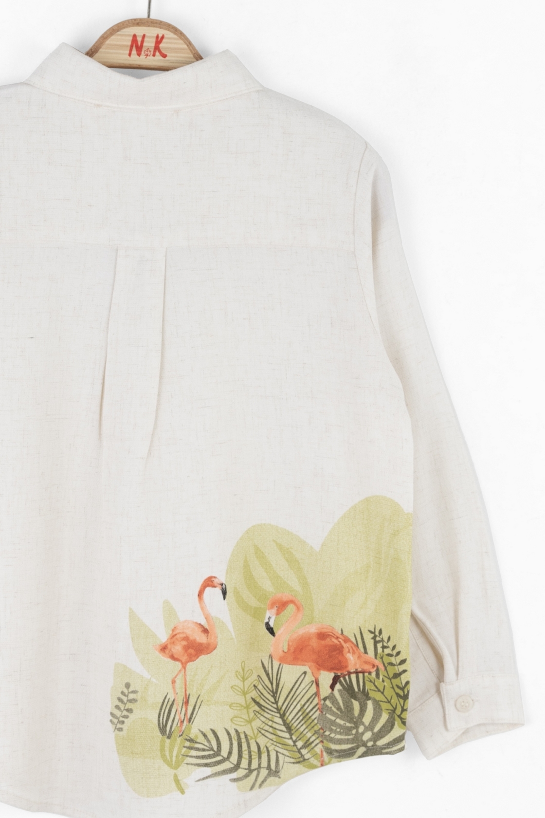 هذه القميص الأنيق والمريح للبنات هو خيار مثالي للاستخدام اليومي وللمناسبات الخاصة. بلون كريمي، يمنح مظهرًا طبيعيًا مع وجود طباعة فلامنغو مثيرة للاهتمام على الظهر. بفضل أكمامه الطويلة، يمكن ارتداؤه في أي موسم.