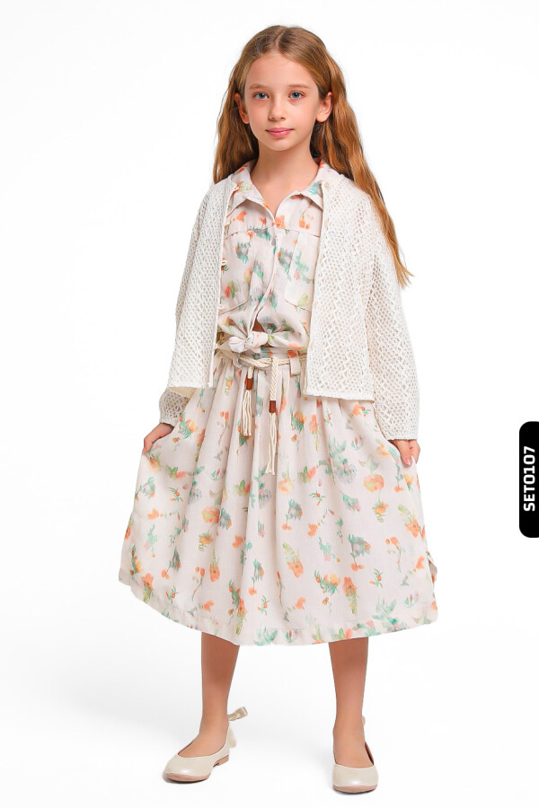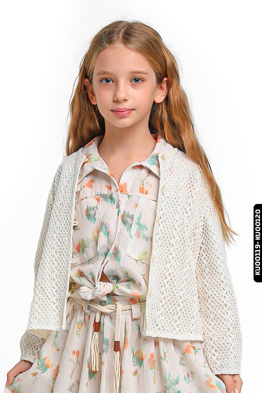 هذه السترة للفتيات خيار مثالي خفيف وأنيق لموسم الصيف. تتميز بتصميم ياقة دائرية كلاسيكية وأكمام طويلة لتوفير راحة أثناء الارتداء. تحتوي على أزرار في الأمام للإغلاق. بفضل النسيج المحبوك، فهي تسمح بمرور الهواء وتحافظ على البرودة خلال الأيام الحارة. اللون البيج يضفي مظهراً بسيطاً وأنيقاً يناسب الملابس اليومية والخاصة بسهولة.