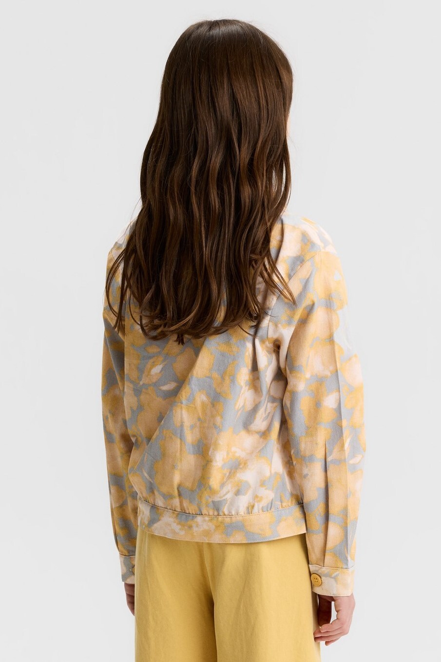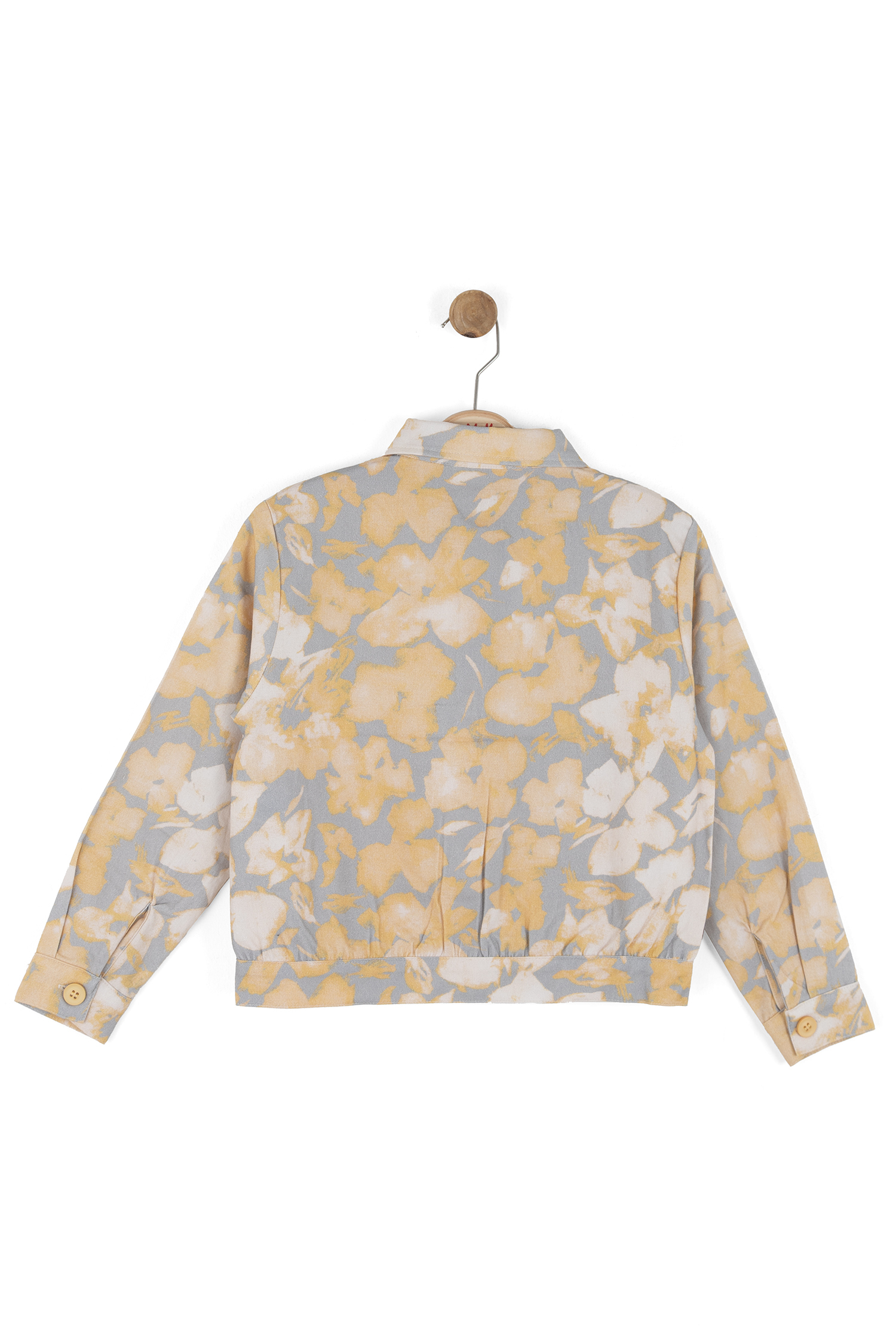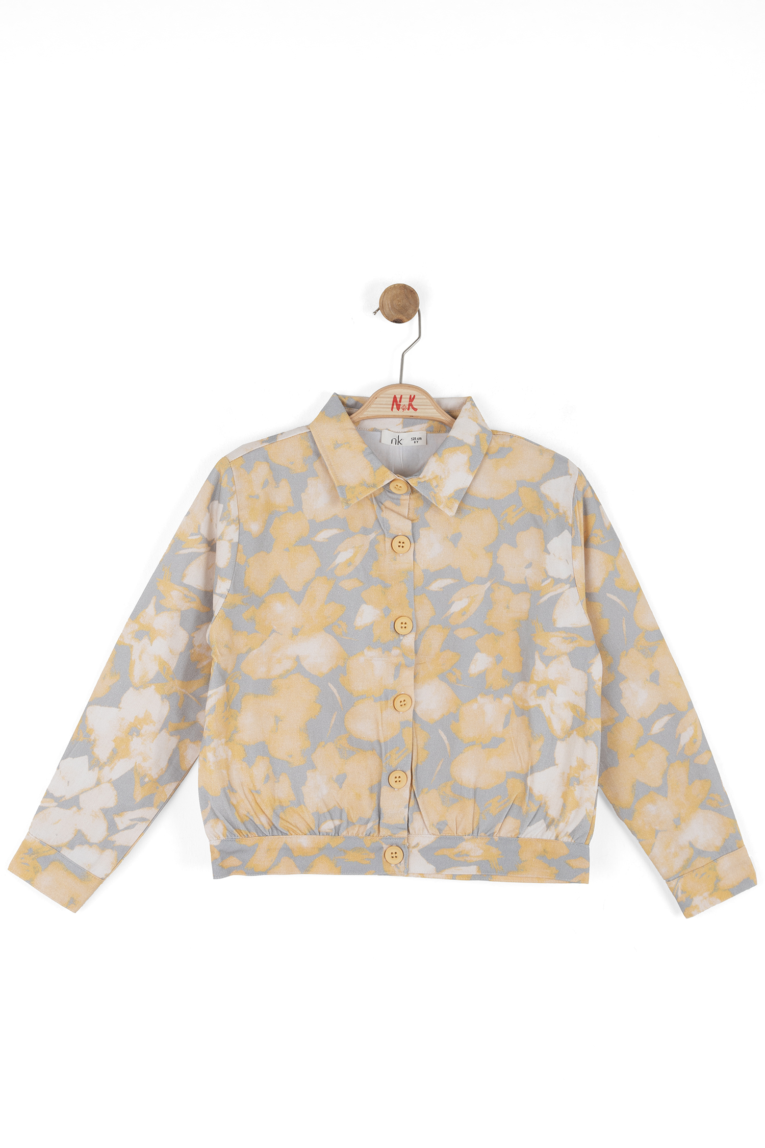 Bu kız çocuk gömleği, bahar sezonu için ideal, hafif ve rahat bir dış giyim parçasıdır. Kapüşonsuz ve uzun kollu olan gömlek, klasik yaka tasarımıyla sade ve şık bir görünüm sunar. Ön kısmında düğmelerle kapanan gömlek, sarı ve gri tonlarında soyut çiçek desenleriyle dikkat çeker. Ayrıca, gömlek yan ceplerle pratiklik sağlar ve elastik bel detayı sayesinde rahat bir kullanım sunar. Günlük ve spor kombinlere uyum sağlayacak modern bir tarza sahiptir.