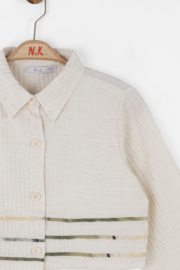 Bu şık kız çocuk gömleği, günlük giyimde rahatlık ve stil arayan ebeveynler için mükemmel bir seçimdir. Krem rengi ile her türlü kıyafetle kolayca kombinlenebilir. Kısa kollu tasarımı, yaz aylarında serin tutarken, önden düğmeli kapama özelliği ile kullanım kolaylığı sağlar.