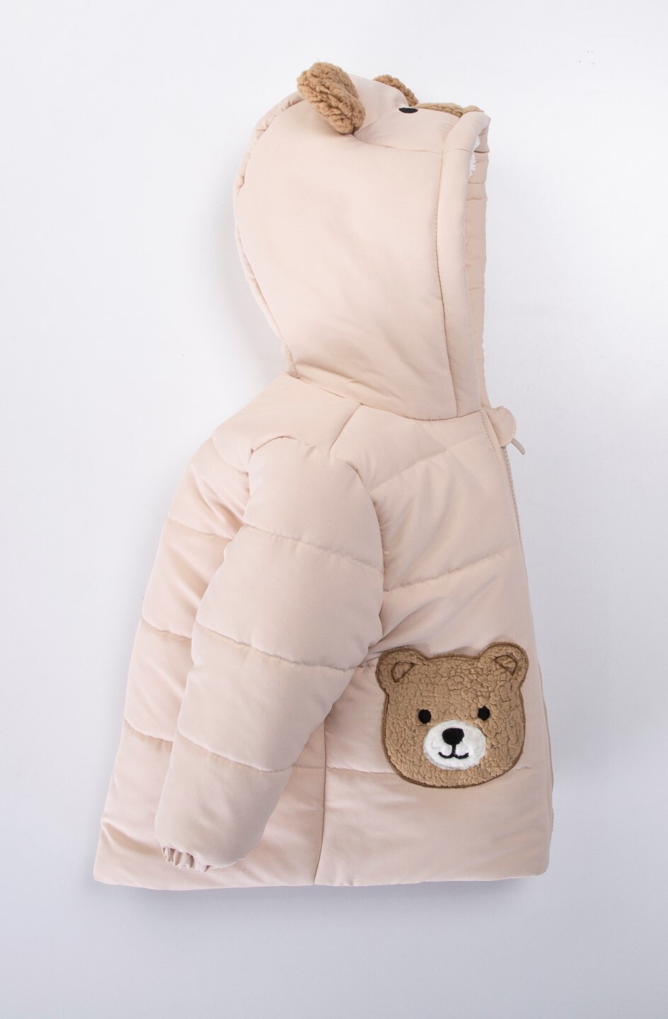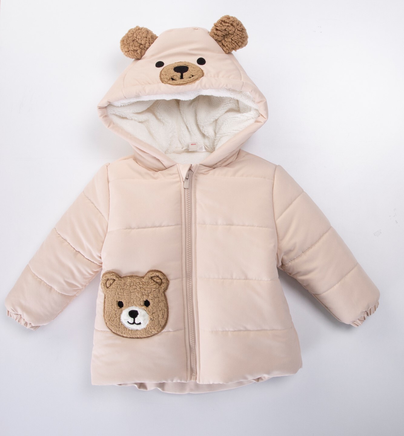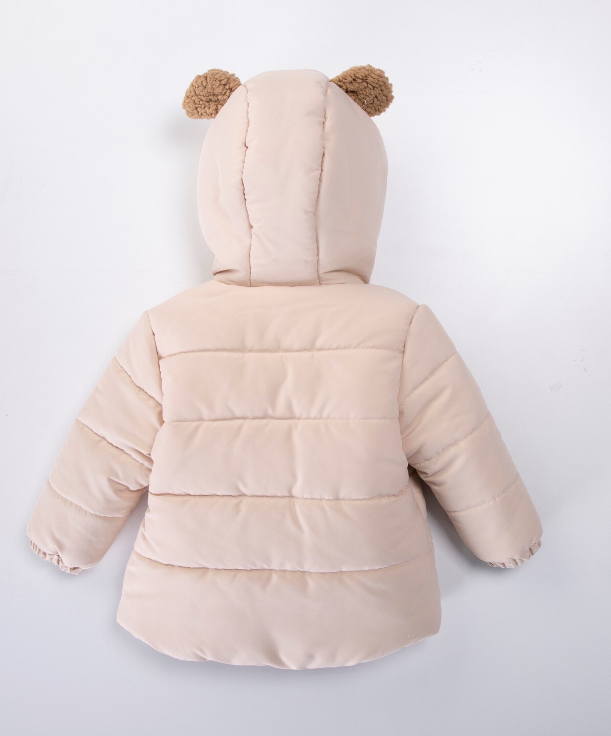 Bu kız çocuk kabanı, soğuk kış günlerinde miniklerinizi sıcacık tutmak için tasarlanmıştır. Bej renkte olan bu kaban, sevimli ayıcık detaylarıyla çocukların ilgisini çeker. Kapüşonlu yapısı, iç kısmı peluş astarlıdır ve sevimli ayı kulaklarıyla süslenmiştir. Fermuarlı kapanışı sayesinde kolayca giyilip çıkarılabilir. Uzun kollu ve orta boy uzunluğundadır, bilek kısmında lastikli manşetler bulunmaktadır. Kabanın önünde peluş ayı figürlü cep şıklık katarken, sade ve şık tasarımı günlük kullanım için idealdir.