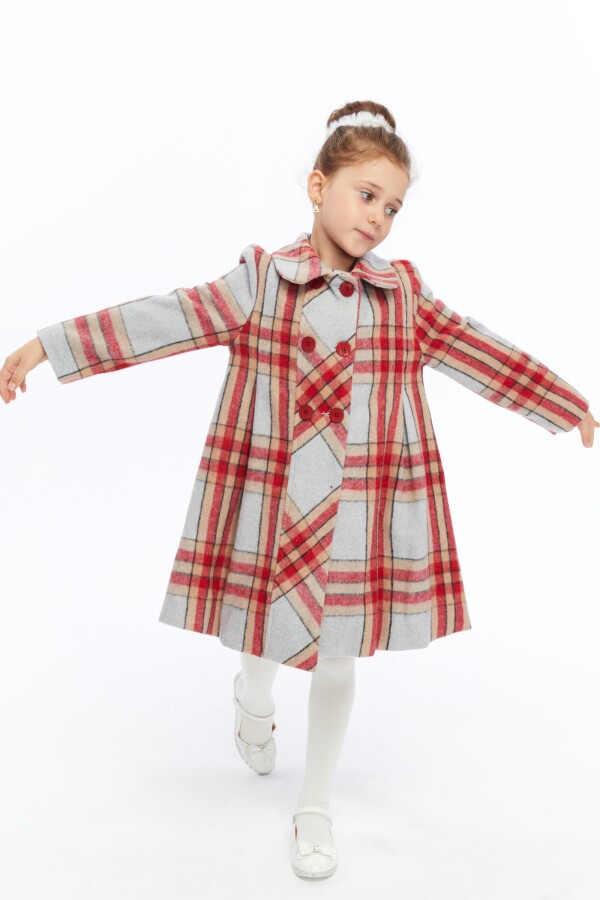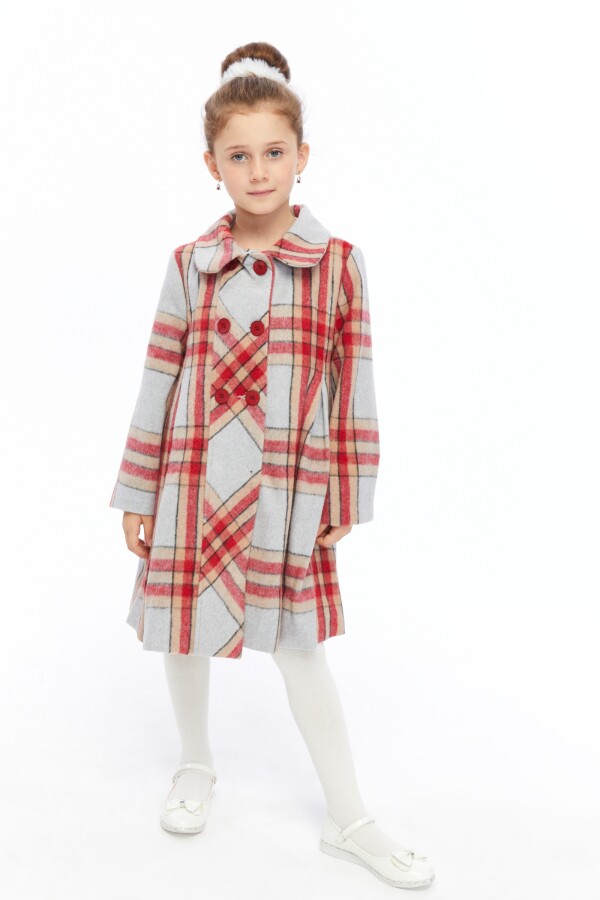 Kız Çocuk Kaban 6-10 Yaş 6542 Gri-Kırmızı - 1