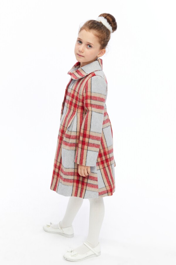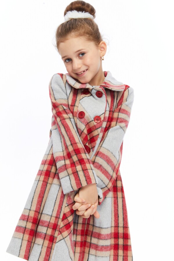 Kız Çocuk Kaban 6-10 Yaş 6542 Gri-Kırmızı - 4