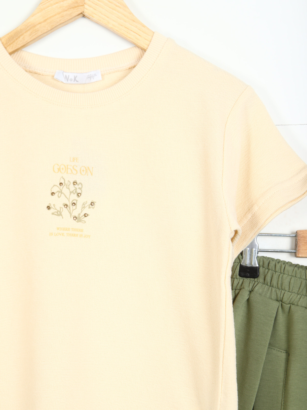 Kız Çocuk Kombin Takmı 4-8 Yaş SET0298 Haki - 1