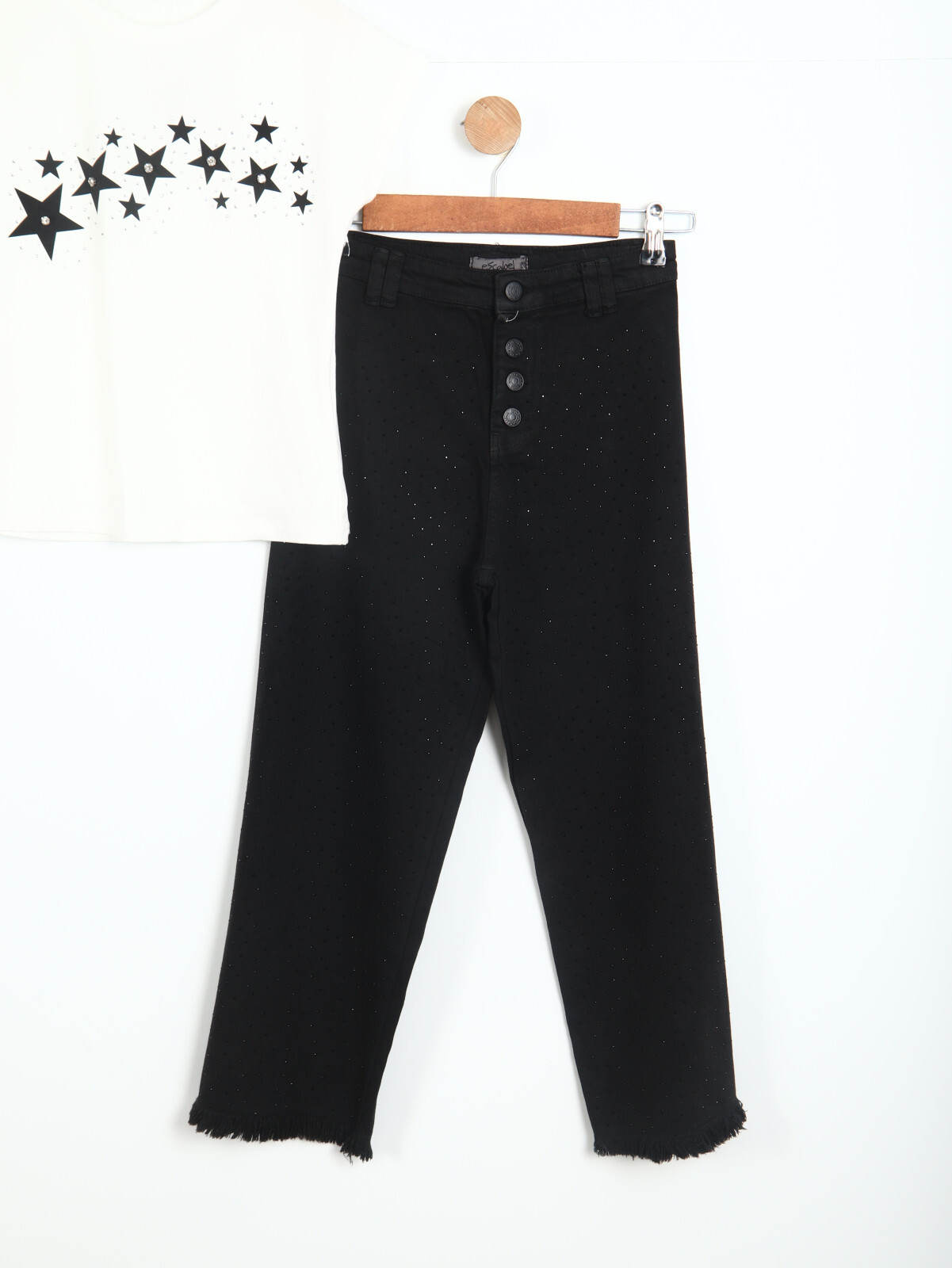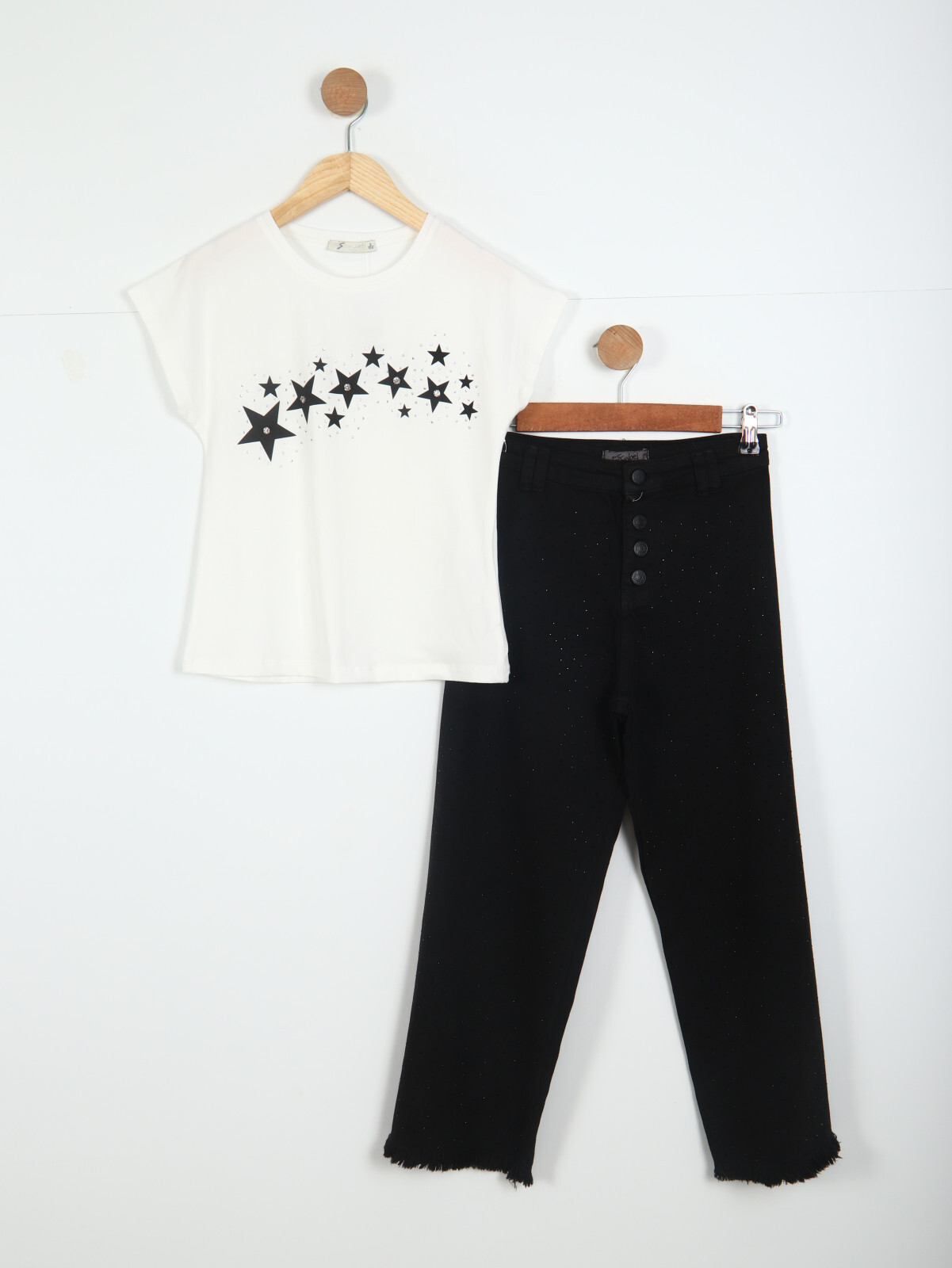 Kız Çocuk Alt Üst 2 Parçalı Kombin Takmı 5-13 Yaş SET0364 Siyah