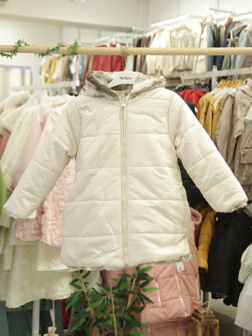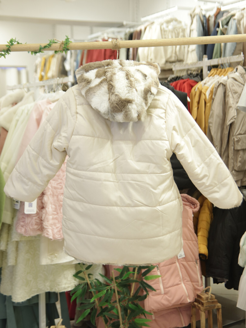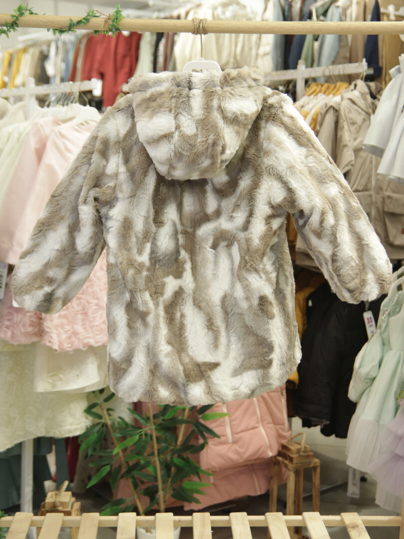 Bu kız çocuk montu, soğuk kış günlerinde miniklerinizi sıcacık tutmak için tasarlanmıştır. Bej renkte olan montun dış yüzeyi yumuşak ve pofuduk bir yapıya sahiptir. Kapüşon kısmı, kahverengi ve beyaz tonlarında peluş kumaşla kaplanmış olup ekstra sıcaklık sağlar. Mont fermuarlı olup, uzun kolludur ve rahatça giyilip çıkarılabilir. Astarı da aynı yumuşak peluş kumaştan yapılmıştır. Cepli ve kordonsuz sade tasarımı, şık ve rahat bir görünüm sunar. Midi boy uzunluğu sayesinde hareket özgürlüğü sağlar ve günlük kullanıma uygundur.