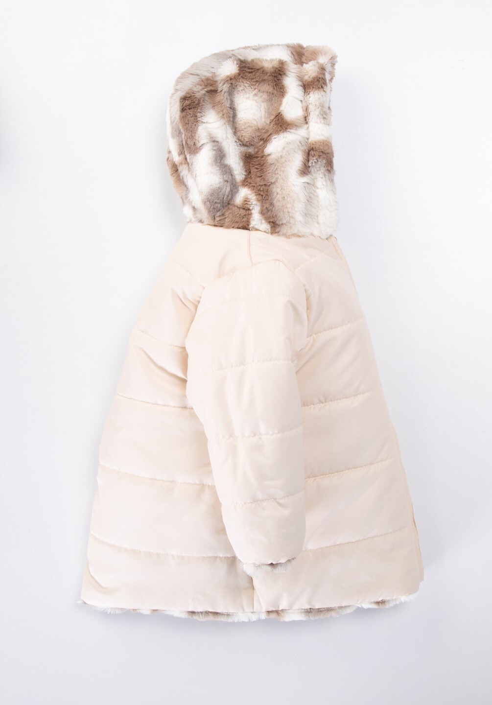 Çift Taraflı İçi Polarlı Rüzgar Geçirmez Kapüşonlu Şişme Kız Çocuk Mont 2-6 Yaş 50315 Bej