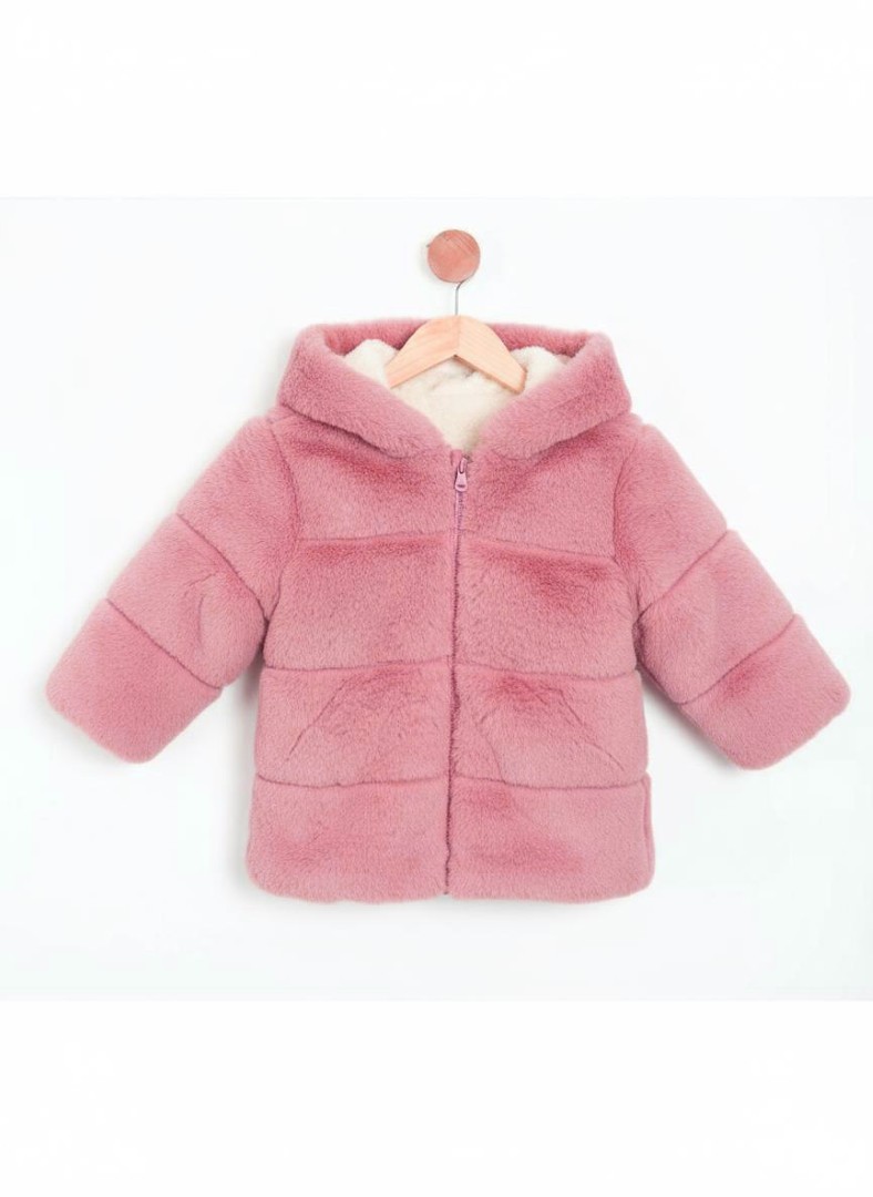 Bu kız çocuk montu, yumuşak ve peluş dokusuyla soğuk kış günlerinde miniklerinizi sıcacık tutar. Kapüşonlu tasarımı sayesinde ekstra koruma sağlar. Fermuarlı ön kapanışı sayesinde kolay giyilip çıkarılabilir. Montun cepleri, elleri sıcak tutarken pratik kullanım sunar. Uzun kollu ve midi boy uzunluğundaki bu mont, günlük kullanıma uygun rahat ve şık bir seçenektir. Pastel pembe renk tonu, sevimli ve nazik bir görünüm yaratır.