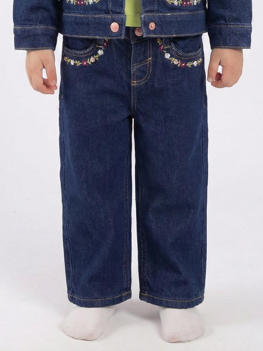 Kız Çocuk Çiçek Nakışlı jean Pantolon 4-13 Yaş 26164 Mavi