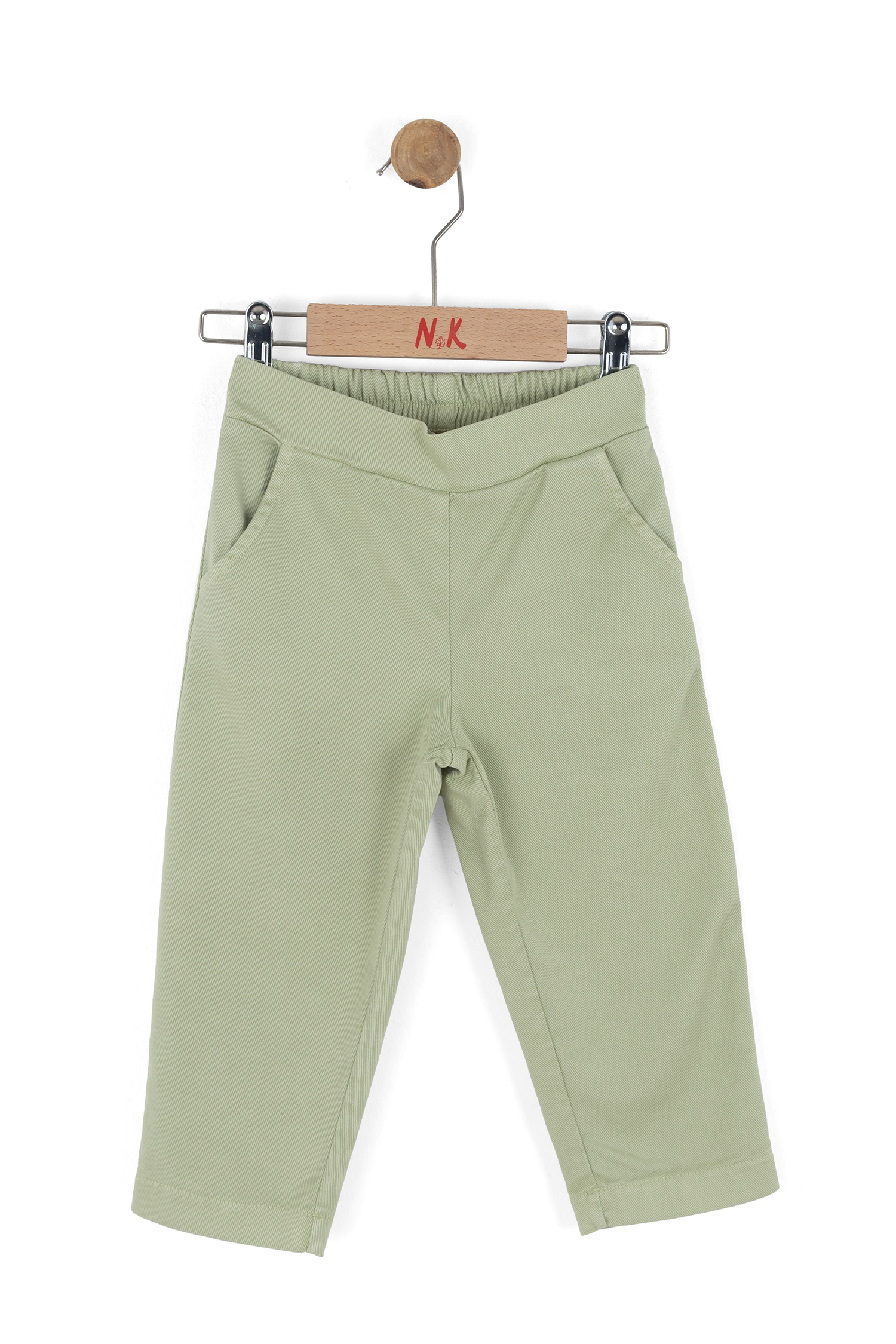 This girls' pants are perfect for spring, combining comfort and style. Featuring a soft mint green color, the pants have an elastic waistband that allows easy wear and freedom of movement for kids. With pockets at the front and back, this simple and modern design is ideal for everyday use and pairs well with various tops.