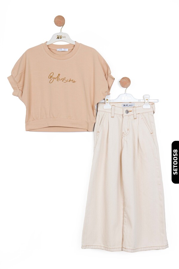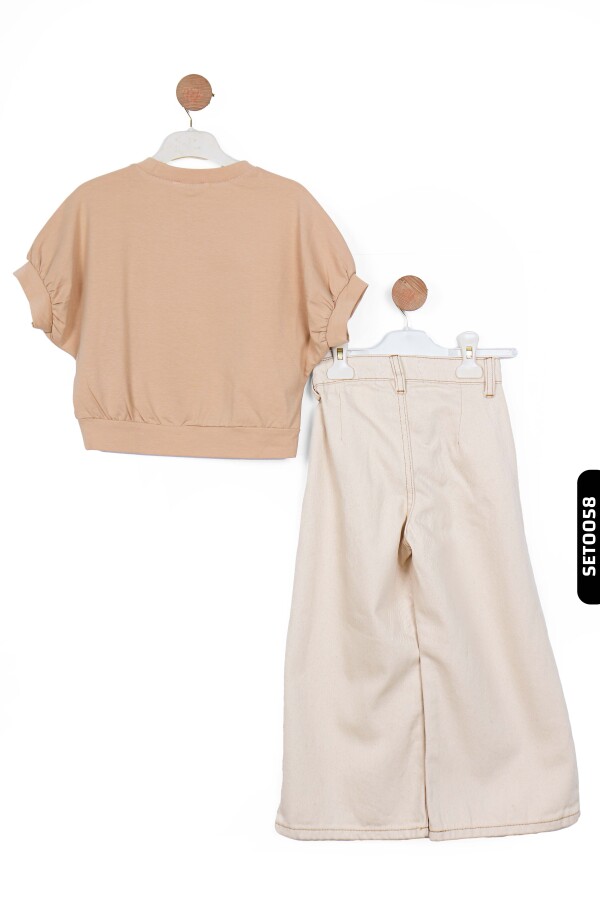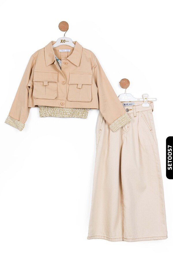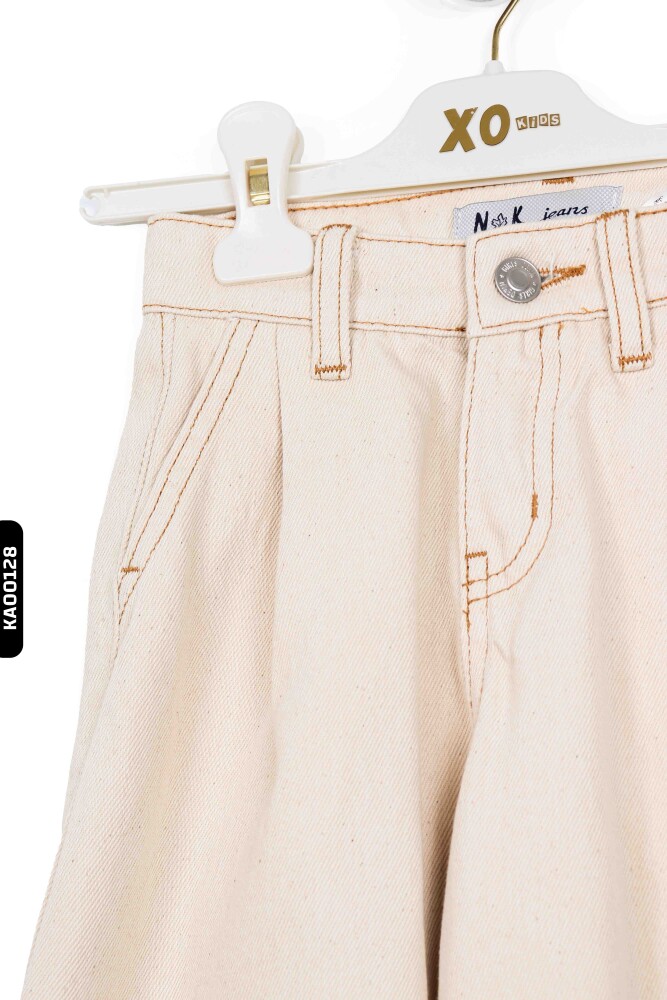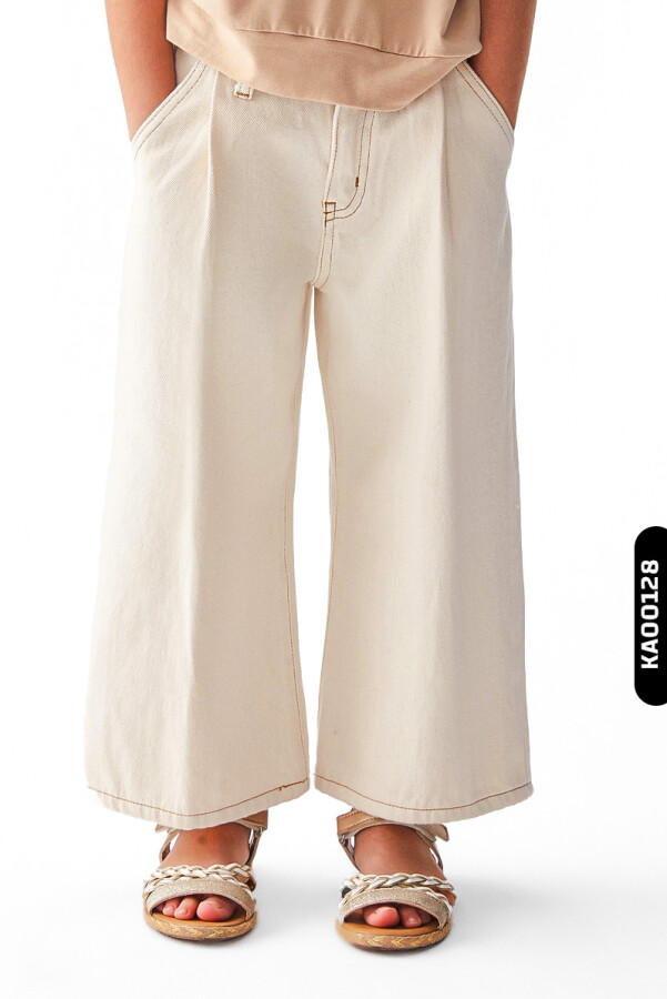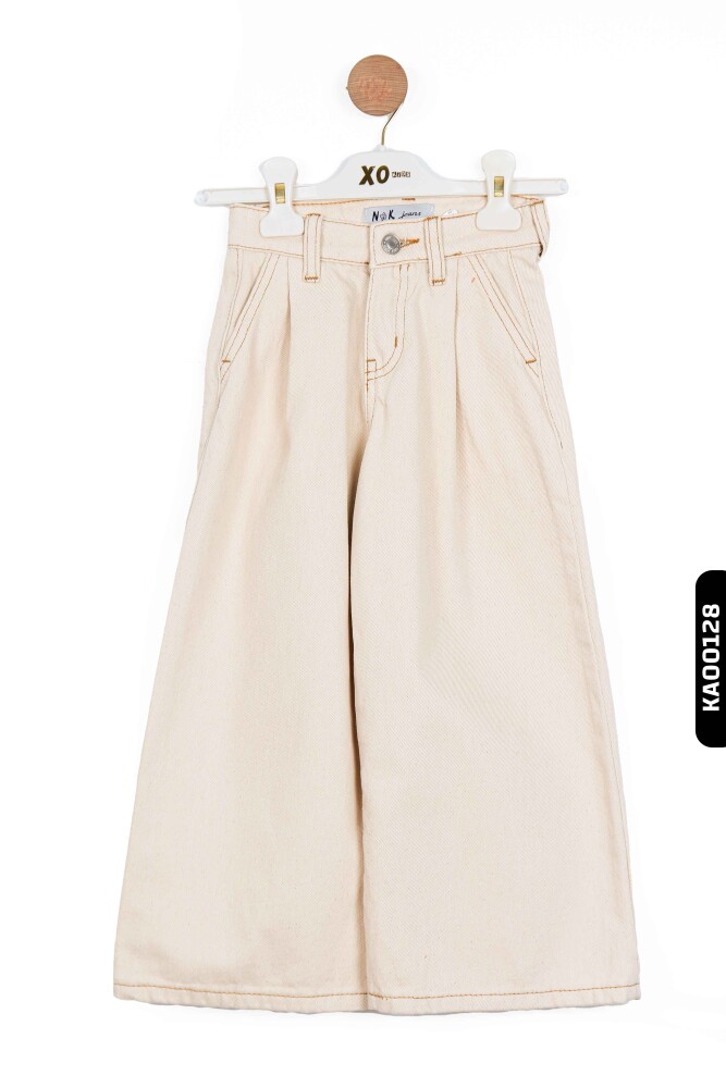 56715 بنطال بناتي بأكمام عريضة جيوب متناظرة بخصر عادي للأعمار 4-8 سنوات