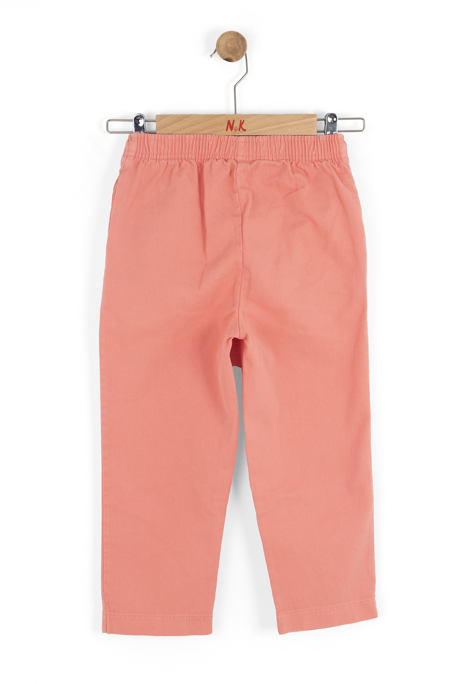 Bu kız çocuk pantolonu, rahat ve şık bir tasarıma sahiptir. Pudra-pembe tonlarında olan pantolon, elastik bel bandı ve kordon detayıyla çocukların kolayca giymesine olanak sağlar. Yanlarda cepler bulunmakta olup, düz kesim ve uzun paça stiliyle günlük kullanıma uygundur. Pamuklu kumaşı sayesinde konforlu ve nefes alabilir yapıya sahiptir. Spor ve rahat tarzları seven çocuklar için ideal bir seçimdir.