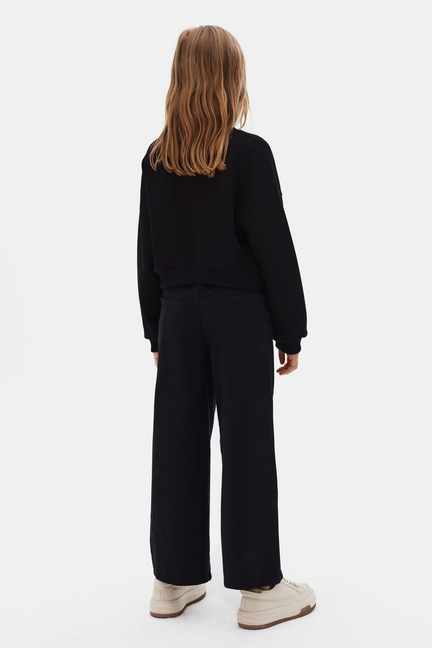 Bu kız çocuk pantolonu, rahatlığı ve şıklığı bir arada sunan geniş paça tasarımıyla dikkat çekiyor. Fermuar veya düğme gibi kapanış detayları bulunmayan, sade ve kullanımı kolay bir modeldir. Cepleri ve kordonu olmaması sayesinde minimal ve temiz bir görünüm sağlar. Uzun paçalı ve düz kesimi sayesinde günlük kullanımda ve spor kombinlerde rahatlıkla tercih edilebilir.