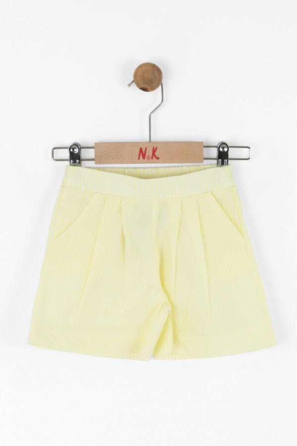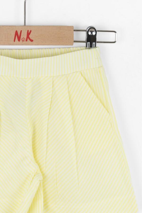 Bu şık ve rahat kız çocuk şortları, yaz günlerinde giymek için mükemmel bir seçimdir. Yumuşak dokusu ve hafifliği ile çocuklarınızın hareketlerini kısıtlamaz. Sarı renkli şort, ince beyaz çizgilerle süslenmiştir ve hem şık hem de modern bir görünüm sunar.