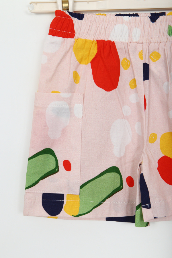تتميز هذه الشورتات للبنات بقماش ناعم ومريح، مثالية لفصل الصيف. تحتوي على حزام خصر مطاطي لسهولة الارتداء وحركة مريحة. الشورت مزين بطبعات ملونة ومجردة تضفي مظهرًا مبهجًا وحيويًا. تحتوي على جيوب عملية على كلا الجانبين لحمل الأغراض الصغيرة بسهولة. طولها قصير وقصتها مريحة، مما يجعلها خيارًا رائعًا للاستخدام اليومي.