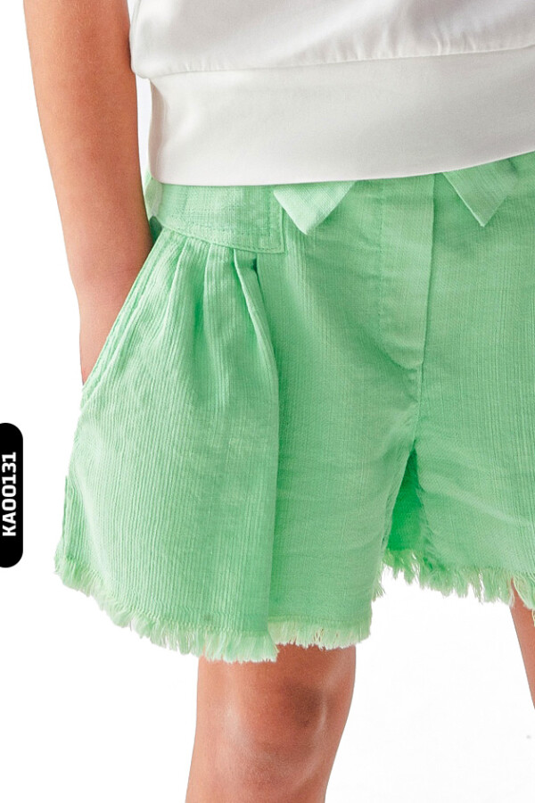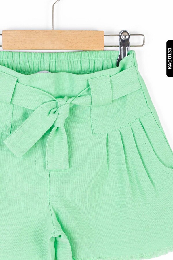 تتميز هذه الشورت للبنات بتصميم مريح وتفاصيل أنيقة تجعلها مثالية لفصل الصيف. بلون أخضر زاهي وملمس طبيعي يعكس طاقة الأطفال، تحتوي الشورت على حزام ربط قابل للتعديل عند الخصر لتوفير ملاءمة مريحة. الجيوب الجانبية تضيف وظيفة وأسلوبًا، بينما الأجزاء القصيرة مع الحواف المحززة توفر مظهرًا عصريًا ومريحًا.