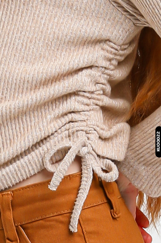 - Bej tonlarında, ince ve yumuşak triko kumaş