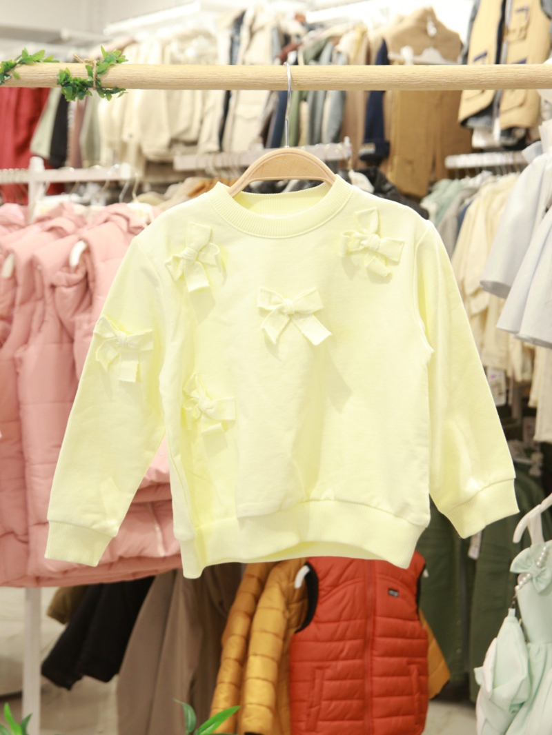 Bu kız çocuk sweatshirtü, yumuşak dokusu ve şık tasarımıyla kış aylarında rahatlıkla tercih edilebilir. Kapüşonsuz ve fermuarsız olan bu model, bisiklet yaka tasarımıyla sade ve kullanışlıdır. Sweatshirtün ön yüzünde ve kol kısmında yer alan şık kurdele detayları, ürüne zarif ve sevimli bir dokunuş katmaktadır. Uzun kollu ve standart boy uzunluğundadır, günlük spor ve casual kombinler için idealdir.
