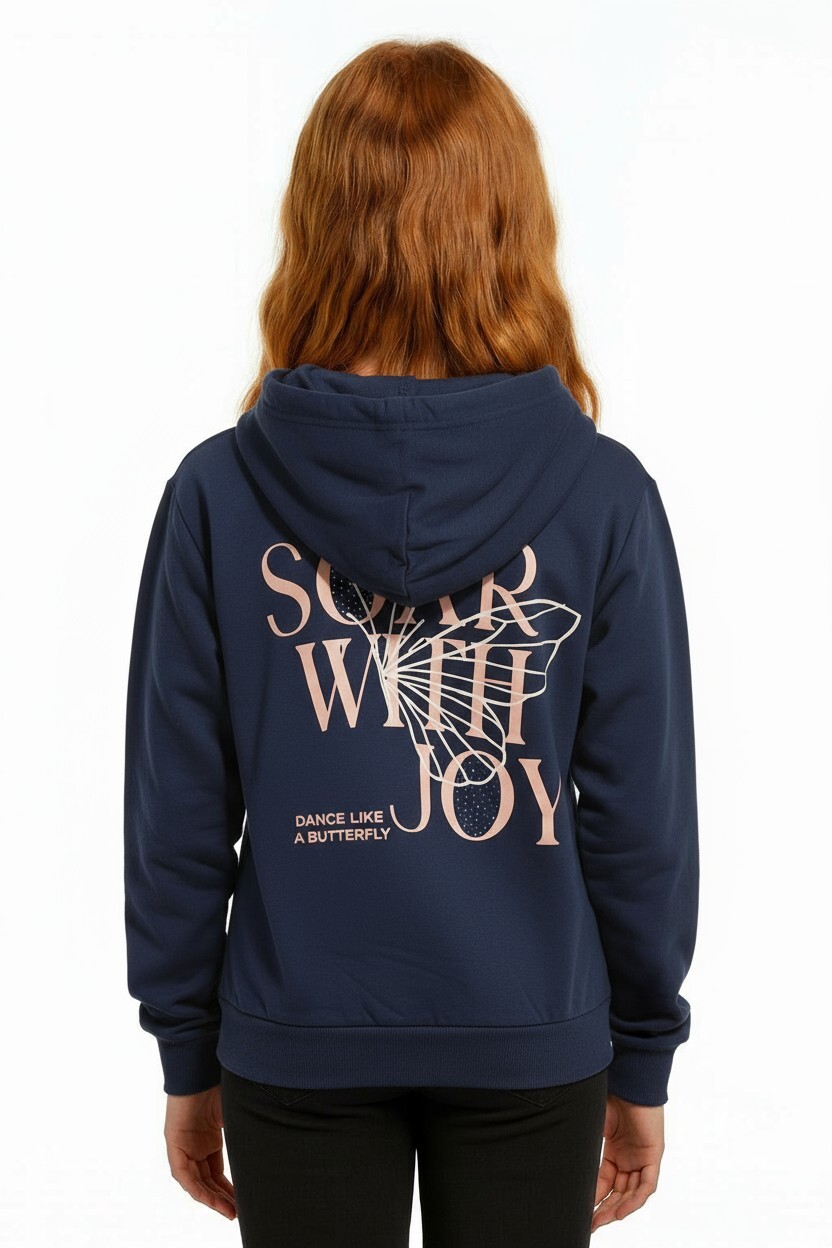 هذا السويتشيرت للبنات يأتي بلون بني دافئ وقصة مريحة، مثالي للاستخدام اليومي. يحتوي على غطاء للرأس (هود) لتوفير حماية إضافية، ولا يوجد به سحاب. مزين على الأمام بعبارة "DANCE LIKE A BUTTERFLY" محاطة بتفاصيل من الخرز الصغيرة لإطلالة أنيقة ومرحة. الأكمام طويلة مع أساور مضلعة توفر حرية الحركة. يجمع بين الأسلوب الرياضي والكاجوال ليناسب نشاط الأطفال.