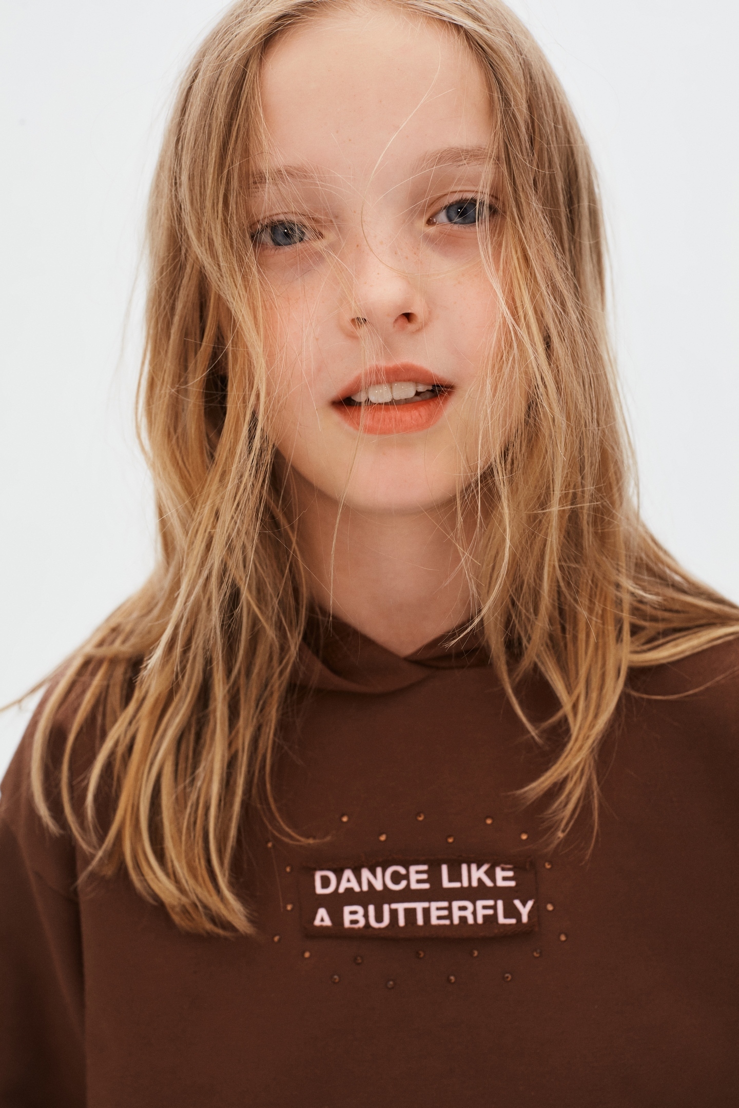 هذا السويتشيرت للبنات يأتي بلون بني دافئ وقصة مريحة، مثالي للاستخدام اليومي. يحتوي على غطاء للرأس (هود) لتوفير حماية إضافية، ولا يوجد به سحاب. مزين على الأمام بعبارة "DANCE LIKE A BUTTERFLY" محاطة بتفاصيل من الخرز الصغيرة لإطلالة أنيقة ومرحة. الأكمام طويلة مع أساور مضلعة توفر حرية الحركة. يجمع بين الأسلوب الرياضي والكاجوال ليناسب نشاط الأطفال.